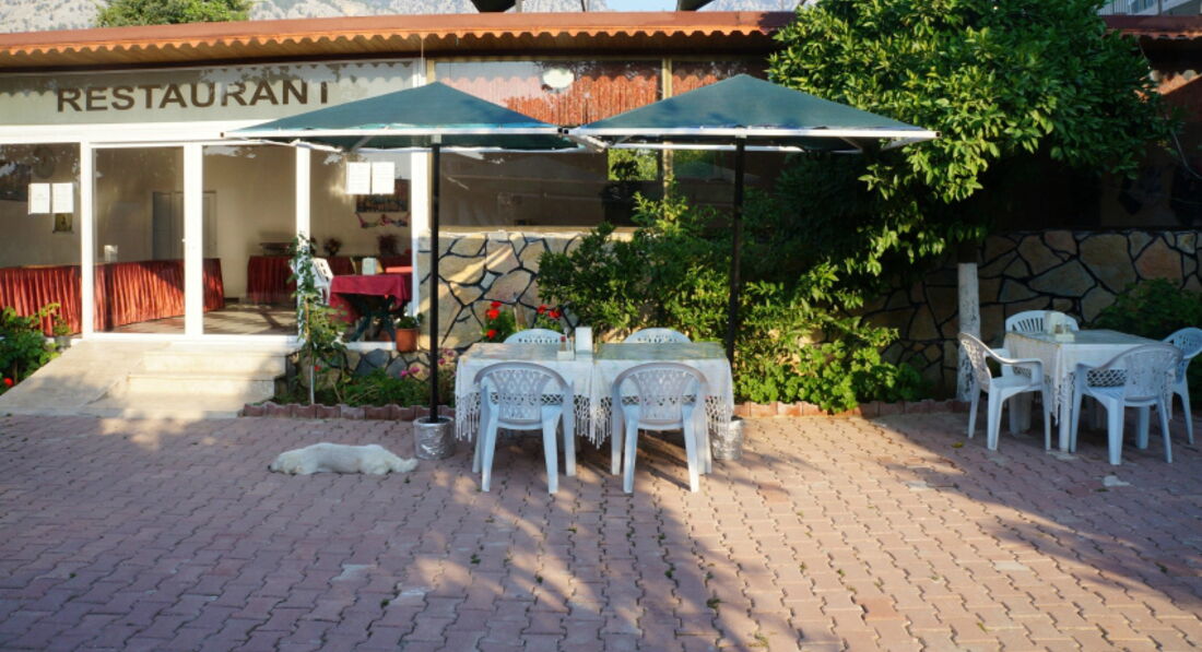Расположение отеля отличное. От аэропорта ехали 40 мин. Территория мини-отеля хорошая. Имеются одноэтажные, как вагончики комнатки и трёхэтажный корпус у бассейна. Зелено. Высажены разноцветная герань и розы. Из деревьев апельсины, платан, пальма. Приехали мы в пол восьмого и нас сразу заселили. Мы жили на третьем этаже, мебель у нас была новая и в номере жарковато, даже включали кондиционер, друзья жили на первом этаже возле бассейна, у них было влажно, прохладно и старая мебель. Номера маленькие, но переспать хватало. Убирали ежедневно. 2 раза меняли полотенца за 10 дней и 1 раз постель. Отель находится недалеко от моря. Выйти прямо из ворот и 5 мин. к центральной дороге. Шезлонгов на пляже невсегда хватало, но можно спокойно постелить на гальке. Для входа в море обязательно нужны тапочки, в них комфортнее. Что касается питания: Завтрак 8.00-9.30, обед 12.00-13.30, ужин 19.00-20.30. Для детей сложно конечно после обеда дождаться ужина, потому что перерыв большой, а здесь несовсем полный оллинклюзив, как в других отелях, еда и напитки не "круглосуточно", а по времени и нет полдников. Хотя, если возьмёте печенюшки, которые дают на завтрак, с чаем или спрайтом после обеда заменят вам полдник. Персонал гостеприимный, конфликтов не возникало. Мы общались с хозяином, могли просто поговорить. Ехали на море, мы его получили. А вообще, смотрите фото и задавайте вопросы. Нам понравилось.