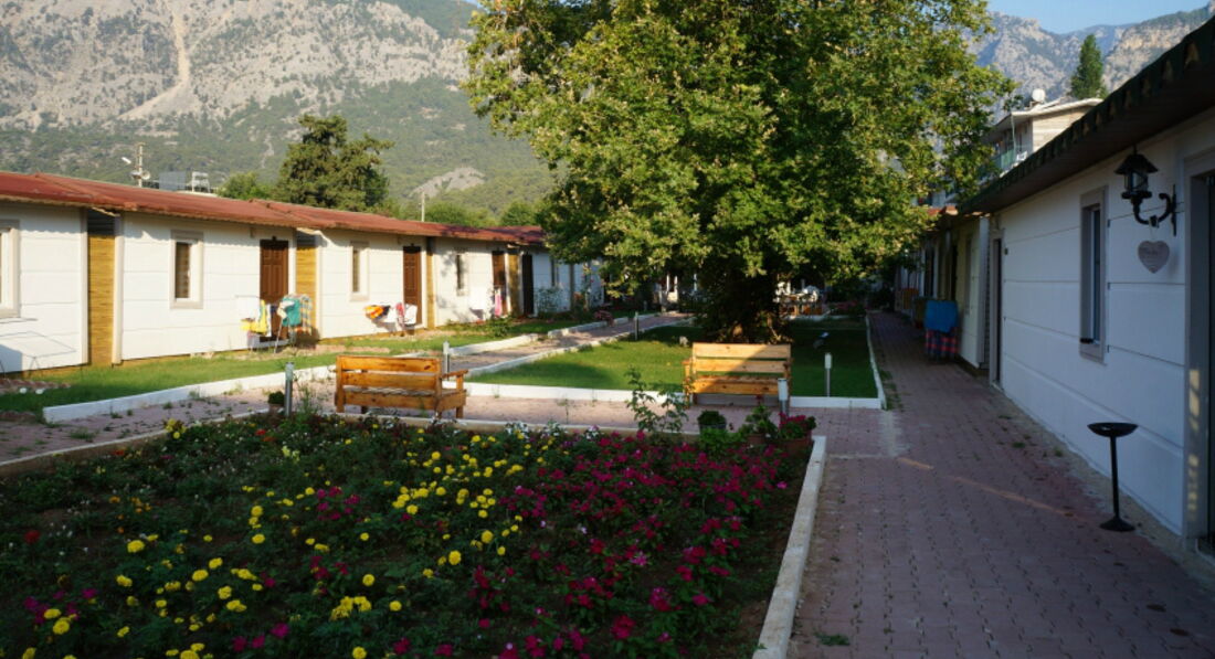 Отдыхала одна в мае с 14 по 22. Погода была прекрасная. Из всех дней три дня был дождь, но это не мешало отдыху и вполне хватило тех теплых дней, чтобы получить шикарный турецкий загар. Море чистое, теплое 22 гр. Купалась каждый день. Вход в море - камни, но со мной всегда тапочки из Египта и меня это не напрягает ( до моря 7 мин. ходьбы). Отдыхающих в мае мало, поэтому на пляжах тихая спокойная обстановка. Получаешь полное удовлетворение и слияние с природой. Теперь об отеле. Я бы сказала это турбаза - небольшой, но уютный, много зелени. Меня заселили на 2 этаже в корпусе, не в бунгало. Очень напрягла старая мебель, но через 2 дня я этого уже не замечала. Убирались каждый день. Два раза меняли полотенца и один раз постельное белье. Хотя многие отдыхающие кричали и возмущались, постоянно были чем то недовольны. Питание скромное, но есть все необходимое (подчеркну, что для меня). Еда всегда свежая. Много овощей в разных видах, вкусностей и полезностей. Из фруктов апельсины, дыни. Мяса было мало. Сладостей не было. Неплохое вино в баре. Благодаря такому питанию я вернулась домой стройной загорелой и счастливой. Единственный недостаток - слышно музыку из соседних отелей, но не каждый день. Отдыхом осталась довольна! Моей целью поездки было море, солнце, природа, тишина и скромное питание. Я это и получила! Спасибо персоналу отеля за тихую уютную обстановку и хорошее отношение к отдыхающим.