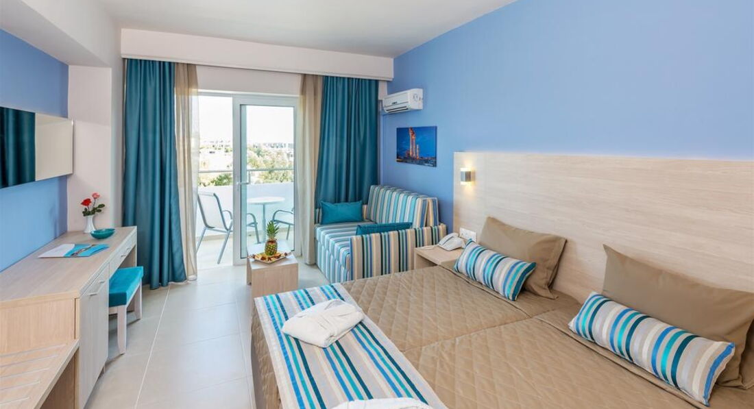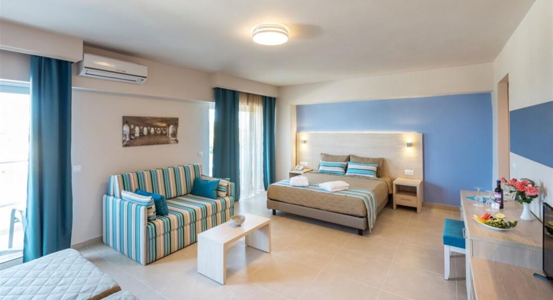 Типи номерів: standard room LV/SV (вид на сад чи море, осн.ліжко - 2 односпальні, дод. - односпальна / софа, макс. 3 +1 чол, 25 м2); superior room LV/SV (вид на сад або море, розташовані на 3м поверсі, ренововані в 2016, осн.ліжко - двоспальне або 2 односпальні, доп. - Софа, макс. 3 +1 чол, 25 м2).Є можливість поєднання номерів.
