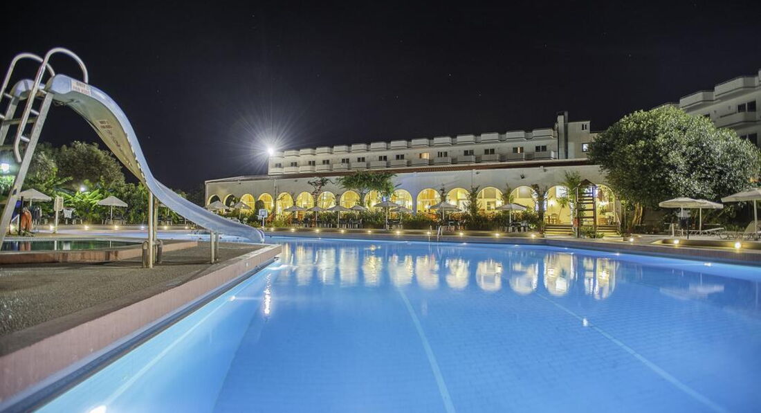 Територія та послуги: Інтернет-кафе платно перукарня (платно) каплиця мінімаркет бари: 2 пральня платно ресторани: 1 лікар за викликом (платно) біля басейну рушники: платно (зміна рушників проводиться на ресепшн) басейни: 1 (відкритий, з прісною водою, 1026 м2, глибина 3,65 м) джакузі: 1 (на відкритому повітрі) паркування є Wi-Fi платно обмін валюти біля басейну шезлонги: безкоштовно (матрац на лежак – платно) Розваги та спорт: сауна платно міні-гольф безкоштовно аеробіка безкоштовно прокат тенісних ракеток та м'ячів безкоштовно масаж платно освітлення тенісного корту платно більярд платно волейбол безкоштовно тренажерний зал безкоштовно дартс безкоштовно водні види спорту платно (на пляжі, не належать готелю) вечірнє шоу безкоштовно електронні ігри платно настільний теніс безкоштовно баскетбол безкоштовно бочче безкоштовно анімація безкоштовно (денна спортивна) тенісний корт безкоштовно (жорстке покриття) Для дітей: дитячі басейни: 1 дитяче меню у ресторані (під час обіду) дитячий майданчик (під відкритим небом (огороджена, покриття – галька) дитяча дискотека (6 днів на тиждень) міні-зоопарк дитячий клуб (4–12 років, 10:00–12:00 та 15:00–17:00, з квітня по жовтень) послуги няні: за запитом, платно дитячий картинг (платно) підігрівач для пляшечок за запитом, безкоштовно дитяче ліжечко: за запитом, безкоштовно (ліжечко-манеж) дитяча ванночка безкоштовно (за запитом) дитячий візочок: за запитом, безкоштовно горщик за запитом, безкоштовно дитячі стільці в ресторані: є Живлення: HB AI Пляж: піщано-гальковий вхід у море: дрібна галька на пляжі парасольки, шезлонги: платно відкрита берегова смуга на пляжі рушники: платно (зміна рушників проводиться на ресепшн) До оплати приймаються кредитні картки: Visa, MasterCard, Maestro.