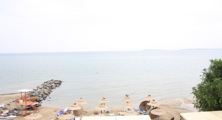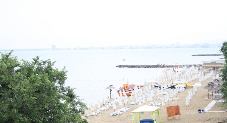 Пляж. Как уже сказал - общий. Песчаный. Пологий вход в море. В общем, для детей - самое оно :) ну и родителям тоже удобно смотреть за своими чадами. К пляжу одно нарекание - малое количество урн. Как результат, люди попросту зарывали бычки в песок, что неприятно. Также отмечу некачественную уборку. Опять же может нам так "повезло", но бывало, что брошенные на пляже накануне или вечером стаканчики так и лежали на следующий день. Есть "платная" часть пляжа - там стоят зонты и лежаки. Стоимость - 8 лев (правда, не уточнял, за сколько это лежаков). Т.к. народу ещё не сильно много, люди просто на своих покрывалах лежали между зонтами, и их никто не гонял. А так многие привозят зонты с собой и раскладывают их, зарывая основание в песок. Море на момент заезда (начало июня) было мягко говоря бодрящим :) Но потом прогрелось. Пару раз был достаточно сильный ливень, и в результате по бокам отеля был мощный сход воды. Думаю, если бы там кто-то был в этот момент, его бы точно утянуло непосредственно на пляж, а там и глядишь в море. Будьте аккуратны.