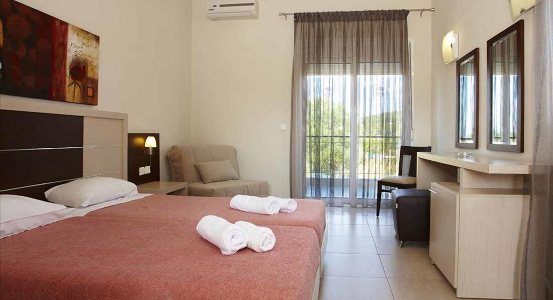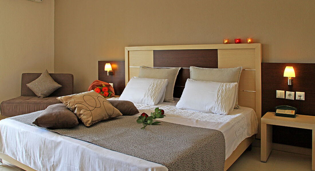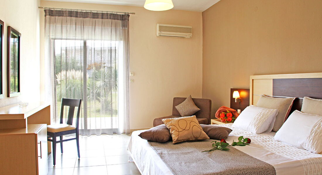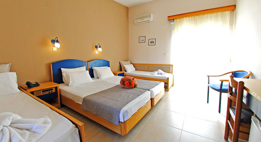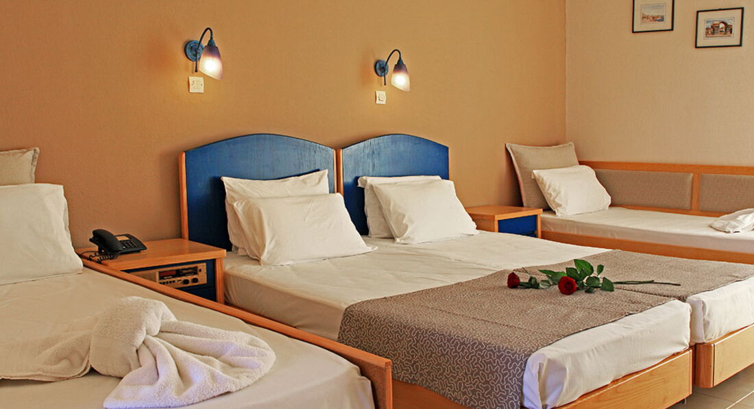Всього 76 номерів: Doubles (~25 кв.м), Quadruples (~30 кв.м). Типи номерів: Double 2 односпальні ліжка (об'єднані). Додаткове ліжко для 3-го дорослого – стандартне ліжко, для 3-ї дитини (до 12 років) – стандартне або розкладне. Quadruple 2 одномісних ліжка та двоспальний диван-ліжко, який розкладається і в 2 односпальні ліжка. Тип додаткового ліжка – розкладне.У номері: Балкон/тераса Ванна/душ Кондиціонер Російський канал Супутникове ТВ Телефон Фен Холодильник