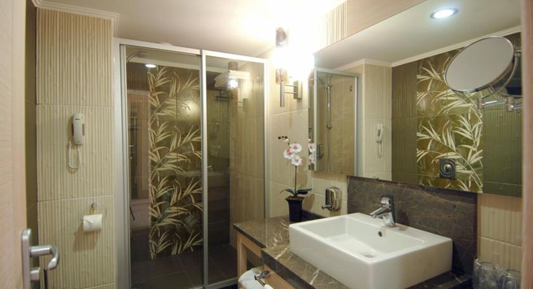 Путівку купляли все включено! Друга лінія готелю від моря, але йти не довго. Плюсів мало - гарний краєвид з вікна номера - гори. Інтер'єр готелю - сучасний, красивий. Ми жили в головному корпусі, на третьому поверсі, номера маленькі, тапочок не видають.Телебачення - канали турецькі і 2російські . Кондиціонер працював. але грязний тобто повний пилюки... Чистота - прибирали добре коли кладеш чайові на ліжко. Але підлогу ні разу не мили в номері. Так на 4 з мінусом...Сейф - ПЛАТНИЙ! Чоловік казав що можна ним було користуватисяі і без плати, якось він там розібрався з ним))) Інтернет - платний! 15 баксів - на все перебування в готелі, от тобі і все включено! Хамам - платний в готелі від 20 $, але ми найшли дешевший ( у вуличних гідів) , у готелього гіда - екскурсії від 50 баксів! У вуличних гідів - від 15 $. Приїхали вранці - поселення на 12 годину дня, ми здали багаж в камеру схову, і одразу на пляж - ооо! це окрема історія - ПЛЯЖ -шезлонги всі зайняті ! Сказали почекайте, коли хтось піде - то тоді можете займати, і ти ходиш і виглядаєш - де б тобі зайняти три вільні шезлонги!!! Територія пляжу малесенька, шезлонгів понатикувано тіснесенько, так що сусідство буде ДУЖЕ БЛИЗЬКЕ - І НЕ ЗАВЖДИ ПРИЄМНЕ!!!. На пляжі все платне окрім води і чаю, якщо хочеш зайняти шезлонг - плати, за рушники пляжні - плати, доріжка до моря - слизька і ніхто її не думає чистити, одним словом - пляж ДУЖЕ замалий на таку кількість гостей. Персонал на пляжі байдужий - хамовитий, дівка з казахською зовнішністю - сварилася з гостями, коли ті почали казати , чому платні рушники на пляжі. Одне радувало - що теплесенька вода, галька, тебе ніби виштовхує на поверхню. Але людей -повно, як на Чорному морі ))) А в останній день, якась гидота викинула сміття - то цілий день купалися всі - в целофані, огризках, і ще не зрозуміло чого - ФУ!!! нудить до цих пір... В готелі все треба дізнаватися самому - це дуже великий мінус. Столова - нічого такого, щоб здивувало . Але дуже великий вибір оливок , зелені багато різної, з морепродуктів - одна риба і то не кожен день. Курка - яку дома не їмо ( окрім домашньої)) - то була кожен день, різні види ковбас - це просто жах - на смак - НІЯКІ! Столи не дуже чисті, і підлога - слизька. Їжу не дозволялось брати в номер, чи на пляж. А що робити тому, хто хоче їсти вночі )))) Кави ранкової - немає, тільки з 8 ранку, багато гостей прямо на рецепшені лаялись -тому що хтось привик пити о 7 ранку - всім все пофіг. Загалом враження - позитивні, тільки ні якому разі не від готелю, ніколи туди не поїдемо. Ми читали відгуки про цей готель, більшість негативні - і подумали що це розбалувані гості писали, але все виявилося ще гірше. Не приємно було, коли дитина взяла фрукти, і його завернули в столовій - адміністратор готелю - не дозволили, це добило остаточно. До речі був сезон кавунів і динь - то давали може разів 2, диня була зелена і не смачна. Яблука і груші - ми тирили тихенько )) і лукум також...))) Це до речі ми бачили як робили всі це... Це смішно - але це правда. Але ж люди - я купувала путівку, щоб ні в чому собі НЕ ВІДМОВЛЯТИ! - А НЕ ДОЛАТИ ВСЯКІ ЗОБОРОНИ ЇХНІ !!! Ніколи, і ніколи туди не поїдемо. Розваг - повний нуль, скукота. Басейн - штиряло хлоркою за кілометр, слава Богу там люди майже не купалися. Масажисти які працюють в готелі - навязливі дуже - ми цього не любимо - як цигани якісь - пропонують свої послуги, і коли ми поцікавились скількт коштує