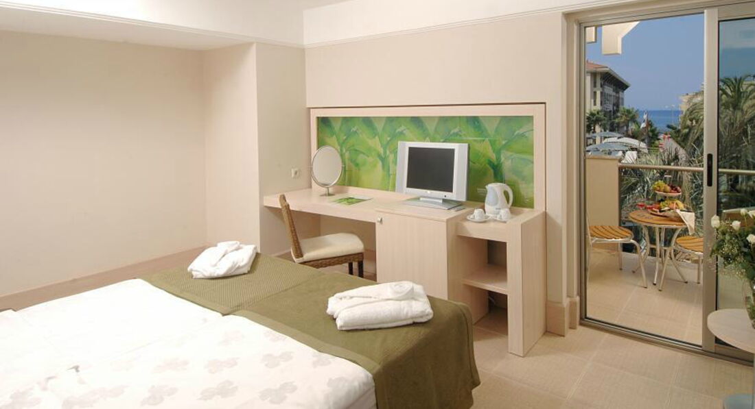 Відпочивали з 31.09.2016 по 10.10.2016р.Готель складається з 5 корпусів.1 і 2 самі головні і ближчі до моря.Нас заселили в 2 корпус номер з видом на гори.Номер з видом на море коштує 1 доба 8 доларів.До моря йти приблизно 3-5хв.Номера чисті і в загальному територія готелю чиста.Їжа різноманітна,смачна,але з морепродуктів крім риби небуло нічого. Бар на пляжі платний. БЕЗПЛАТНО тільки чай і вода.По п'ятницях роблять дискотеку на 2,5 год.Нема анімації.Готель для більш спокійного відпочину. Публіка здебільшого це іноземці і українці.Є ОДНА ПРОБЛЕМА У ДАНОМУ ГОТЕЛІ-це ПЛЯЖ!!!Він замалий на ту кількість людей яка є в готелі.Щоб заняти місце на пляжі біля води Вам потрібно бути на пляжі до 7 .30 год .Якщо прийдете в 9.00 то Вам запропонують місце десь в тіньку це в кращому випадку або попросять присісти за барний столик і зачекати коли буде вільний лежак.Інтернет дають безплатно тільки 300мг НА ВЕСЬ ПЕРІОД ВАШОГО ПЕРЕБУВАННЯ В ГОТЕЛІ.ЦЕ ДУЖЕ МАЛО.Потім він платний 3 год 1євро,10 днІв 15 євро. Рушники на пляж платні.В загальному готель хороший і достойний дійсно на 4+.