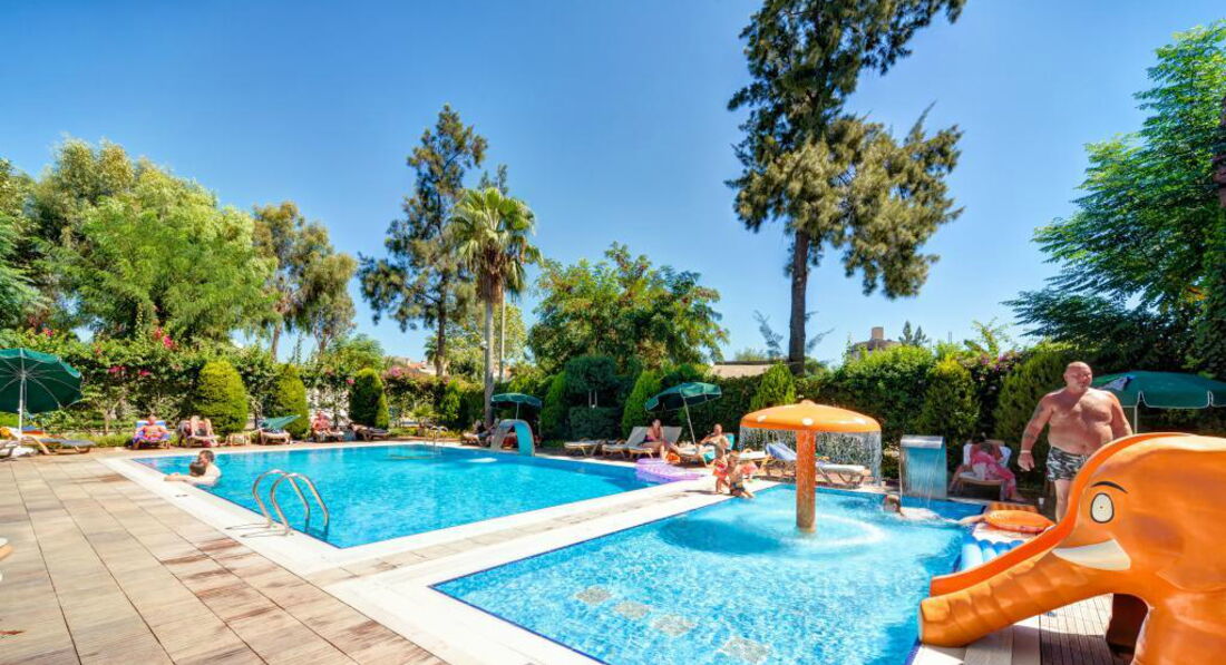 Отель для спокойного отдыха.Мы летали семьей из 4 человек.все взрослые.Нас с мужем разместили в 1 корпусе на 1 этаже с выходом на бассейн.Сын с невесткой жили в 5 корпусе. Он находится через дорогу от двух основных корпусов.Минус всех корпусов кроме 1 и 2 в том что ресторан и бар находятся только возле бассейна.Поэтому что бы выпить вам придется сидеть возле бассейна.Пляж рядом идти 5 минут через дорогу от основных корпусов.анимации нет вообще никакой развлекали себя игрой в настольный теннис.Питание для 4* очень даже не плохое утром омлет и овощи.Обед суп ,мясное,овощи,сладости,на ужин всегда можно было найти рыбу (ну очень вкусная). Контингент отела: украинцы,французы и турки. Территории в отеле нет вообще ,но погулять всегда можно по городу.Пляж не большой ,даже если нет лежаков,вам их всегда найдут работники на пляже.Мы лежали на лежаках соседнего пляжа .Полотенца для пляжа в отеле платные,сейф и минибар тоже(по умолчанию минибар пустой) использовали минибар как холодильник.Вобщем нам все понравилось.