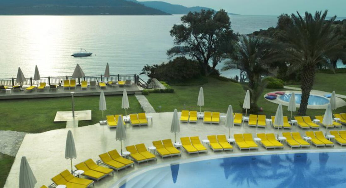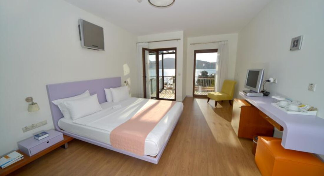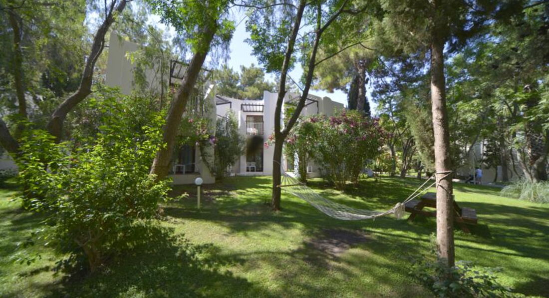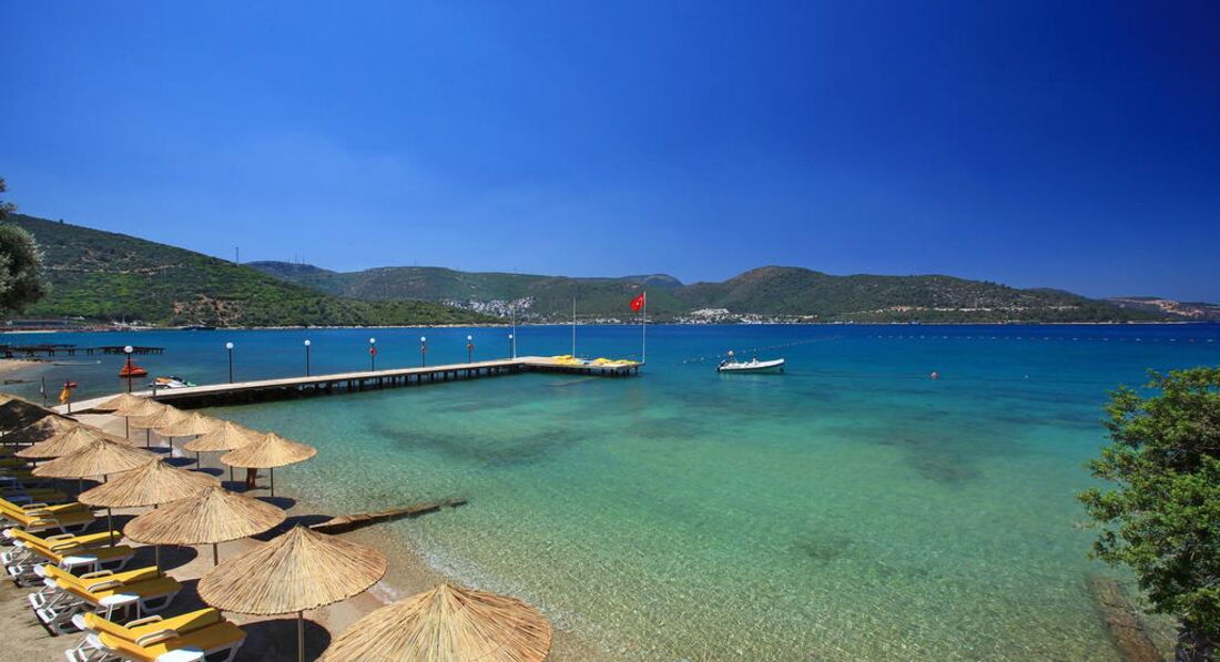 Отличный отель для спокойного отдыха. Расположен в одной из бухт Эгейского побережья, и что является огромным плюсом на мой взгляд - это вокруг больше нет отелей в этой бухте, только зеленые холмы и горы. Территория не очень большая, но уютная и достаточная, везде цветы, зелень. Море чистое, пляж песок-галька, но в воде уже камни, по-этому сделано несколько деревянных пирсов, в принципе довольно неплохо. Есть довольно большая терраса с видом на море. Номера в основном корпусе довольно большие и оригинальные, а самое интересное, что они не одинаковые по цветовым и дизайнерским решениям. В номере очень удобно: сейф, телевизор, мини-бар, балконы у большинства номеров выходят на лес, в номере нет надоевших шкафов: кровать, диванчик, за полупрозрачной плетеной перегородкой конструкция для вещей с полками и вешалками, душ и туалет за стеклянными раздвижными дверями - нет ощущения нагроможденности мебели. На ресепшн вежливый и отзывчивый персонал, помогали по первой же просьбе, но не говорят по-русски (может оно и к лучшему). Питание достаточно разнообразное, огромный выбор десертов, можно заказать салат из свежих овощей, который сделает приветливый повар прямо у тебя на глазах и из выбранных тобой овощей. Днем готовят неплохую пиццу. У бассейна есть фрут-бар, там можно купить свежевыжатые соки и мороженное (это единственное, за что мы платили в отеле, не считая чаевых, но все это не дорого). В цокольном этаже каждый день дискотека с бесплатным баром до 2х часов. Днем у бассейна пару часов идет неплохая анимация. Весь персонал приветливый и веселый. В общем отель подходящий для спокойного комфортного отдыха, а если стало скучно на маршрутке до Бодрума 10 мин. за 2 евро. К отелю ни одной претензии, но обмолвлюсь о турфирме - никогда не ездите с Мострэвэл - они совершенно не знают, что такое сервис и как обращаться с клиентами.