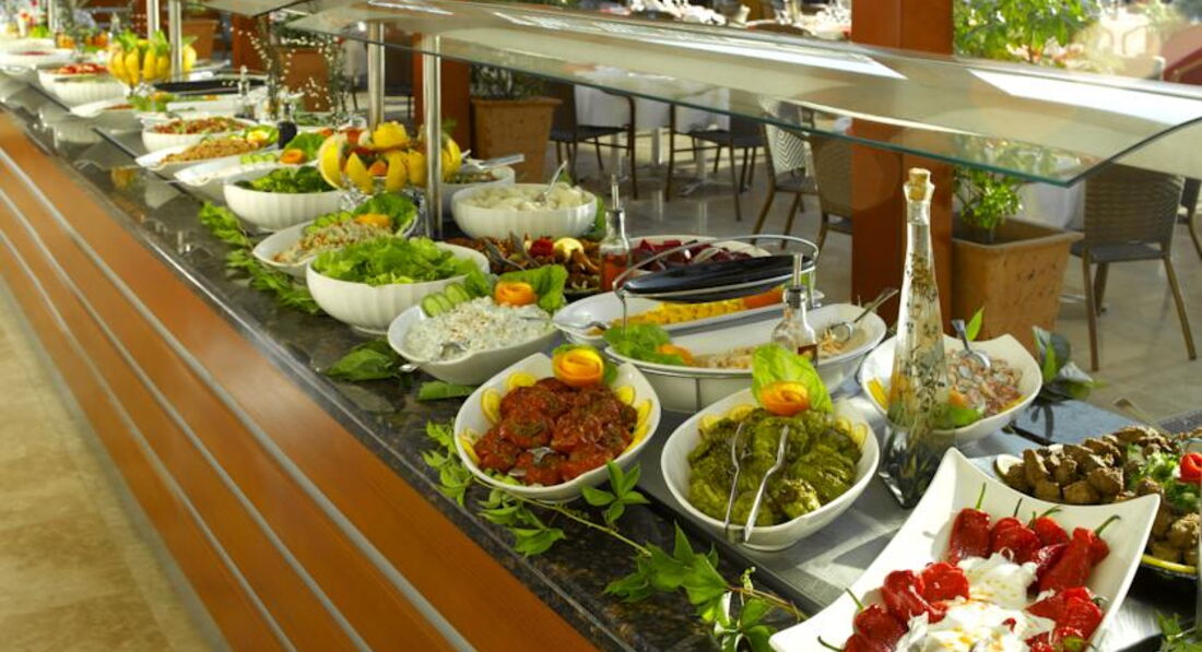 Бари та ресторани: головний ресторан розрахований на 500 осіб (критий, літня тераса, дитяче меню, дитячі стільці); лобі-бар (10:00-23:00), snack-бар (10:00-07:00), диско-бар (23:00-02:00), teras-бар (18:00-24:00) ). 2 ресторани A la Carte: рибний, італійський - відвідування одного з ресторанів безкоштовно 1 раз за час проживання в готелі за попередньою резервацією.