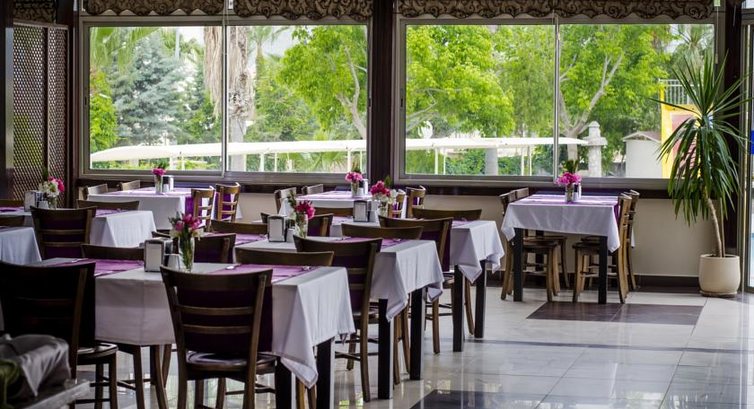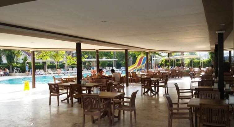 Бари та ресторани: головний ресторан розрахований на 150 осіб (критий, з кондиціонером, літня тераса, дитячі стільці), бар біля басейну (10:00-23:00), бар на пляжі (10:00-20:00). Ресторан A la Carte: турецька - платно, за попередньою резервацією.