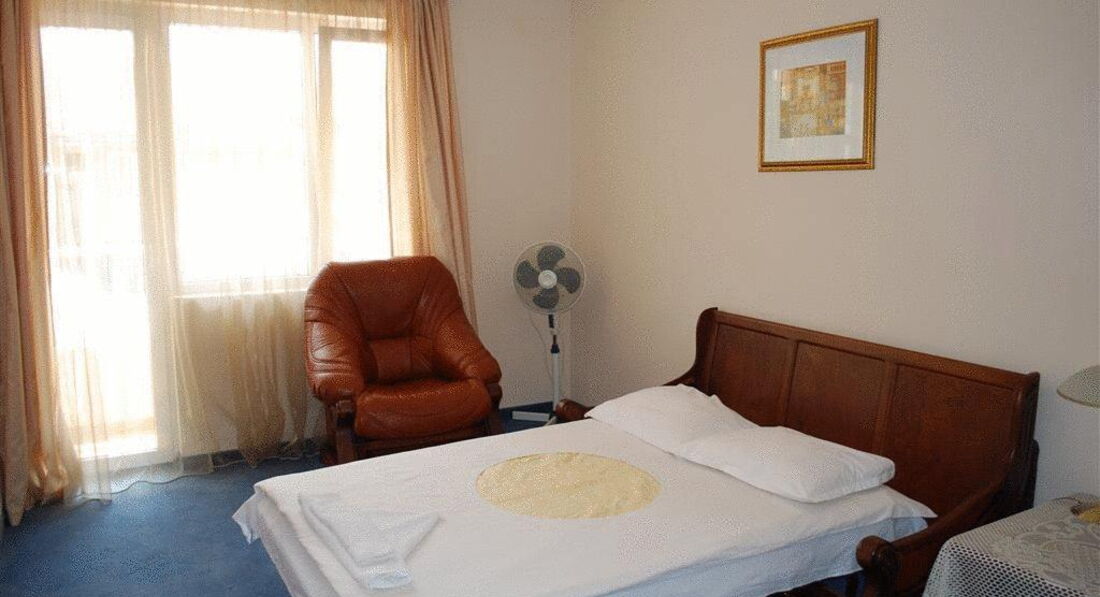 Поскольку выбирали отель,ориентируясь на отзывы туристов,решила написать свой-может будет кому-то полезен.Отдохнули замечательно,не в последнюю очередь благодаря радушию,добросовестности и доброжелательности персонала отеля и его владельца Криса.Он знает 6 языков,с каждым гостем общается на его родном языке;всегда вежлив и предупредителен,готов помочь,если это необходимо.При нас у постояльцев отеля(русская семья с ребенком)возникла необходимость готовить дочке самостоятельно-ротавирус,боялись кормить ее в кафешках-Крис предоставил и плитку, и необходимую посуду в номер(хотя в общем-то и не обязан был это делать).Позитив,доброжелательность и внимание к каждому гостю отеля.У нас был номер с видом на бассейн-небольшой,но все необходимое есть и исправно работает.Сейф платный,но цена вполне умеренная-3 лева в сутки(около 75 рублей).Убирали номер каждый день,полотенца за неделю поменяли один раз.Передвигались по номеру свободно,прятаться никому никуда не было нужно(прочитала в предыдущем отзыве).Правда,у нас были 2 кровати,кстати,с очень хорошими матрасами.Завтраки,может, несколько однообразные,но зато все свежее,в достаточном количестве.Из фруктов постоянно были-арбуз,персики,нектарины,сливы.До пляжа минут 7 прогулочным шагом.Мне лично совсем не понравился песчаный пляж-много народа,долго идти до нормальной глубины,море грязноватое(хотя, может это только нам не повезло-мы сходили один раз в первый день).Потом загорали и купались на камнях напротив отеля Марина палас,море чистейшее,вход достаточно комфортный-камни расположены ступеньками,народа совсем не много.Там,кстати,дайверы часто погружаются.Еще несомненный плюс для меня-рядом с парапетом растут деревья,т.е можно укрыться в тени,можно загорать на солнышке.И к нашему отелю гораздо ближе.Кафешек,механ,ресторанчиков-великое множество,на любой вкус и кошелек; и в старом,и в новом городе.Из расположенных рядом с отелем нам больше всего понравился Джамбо-вкусно,порции большие,быстро обслуживают,цены вполне демократичные.В том же Александре заказ пришлось ждать больше 30 мин.,в результате принесли 1 порцию заказанного блюда и 2 прибора,в ответ на вопрос-почему только 1?!-официантка-пофигистка сообщила,что она,оказывается, записала одно.Впрочем,это не относится к отелю,думаю, каждый найдет где поесть на свой вкус.Евро меняли в обменнике Петров на ул Эдельвейс-из отеля налево и прямо минут 7-курс 1,94; без комиссий.Везде курс в основном 1,92.Старый город-очень компактный,аутентичный и уютный;правда многовато магазинчиков,магазинов и сувенирных лавок.Языковой барьер отсутствует,болгары улыбчивы и доброжелательны.Провожал нас Крис как родных,за все время отдыха-ни одного негативного момента.С удовольствием приедем еще!Полагаю,если решите остановиться в этом отеле,то не будете разочарованы.