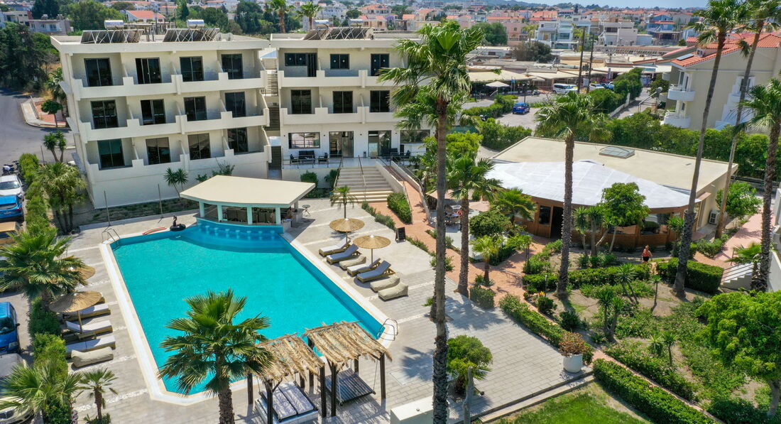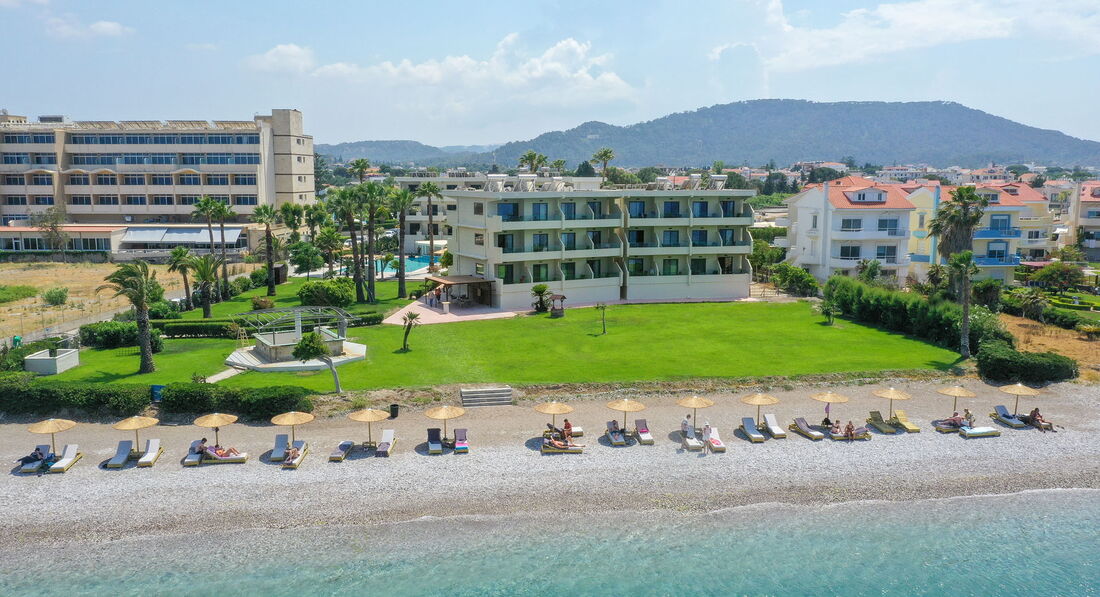 Розташування : Іксія, острів Родос, Греція. В 3 км від аеропорту Родосу (RHO) та в 5 км від Старого міста Родосу. На березі Егейського моря.