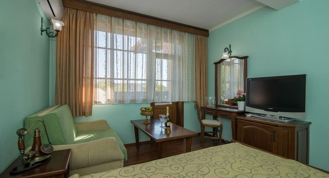 В ресторане представлена как болгарская так и европейская кухни. Очень много фирменных блюд отличного качества. Это отель для тех, кто хочет отдохнуть тет-а-тет.
