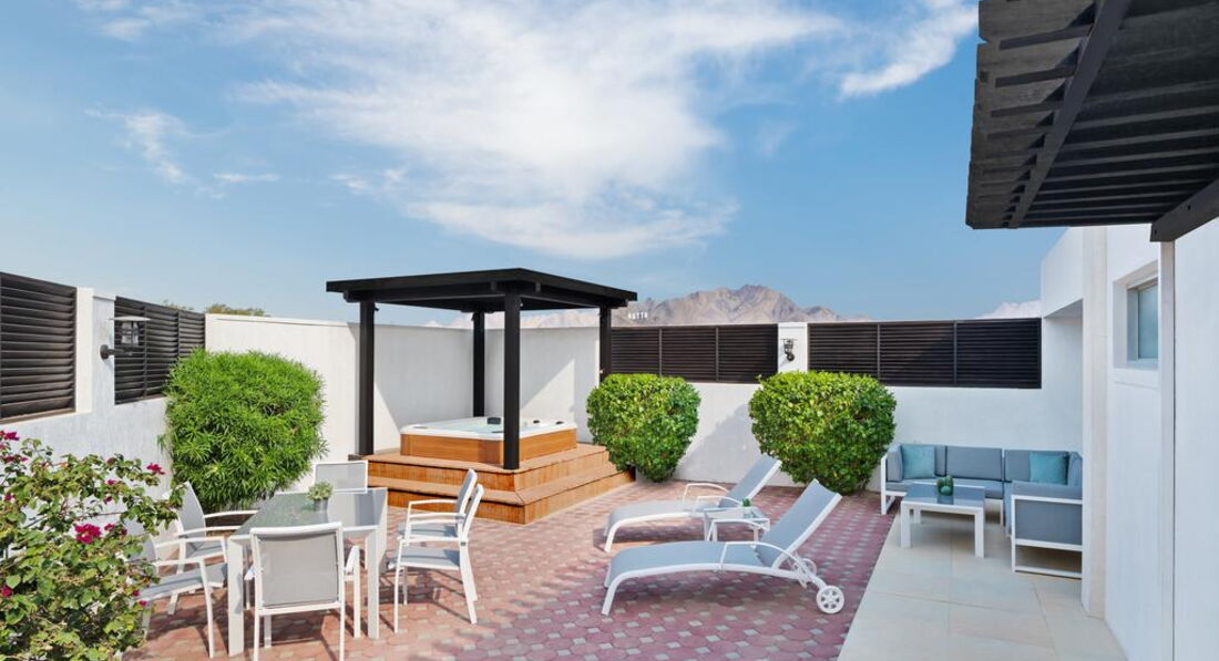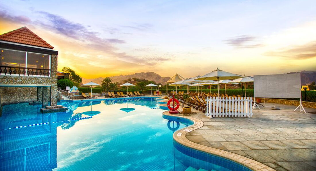 Цей чудовий готель, оформлений в сучасному стилі, з 2 басейнами, спа-центром і тенісними кортами розташований посеред мальовничого саду в самотній гористій місцевості емірату Дубай приблизно в 90 хвилинах їзди від міста Хатта і в 10 хвилинах їзди від кордону ОАЕ з Оманом. Зелена територія, рясна пальмами і квітами, є справжнім оазисом серед пустелі. Готель відмінно підійде людям, які хочуть відпочити далеко від міського шуму. JA Hatta Fort Hotel Dubai, заснована в 1980-х роках, є одним із найстаріших готелів в ОАЕ.