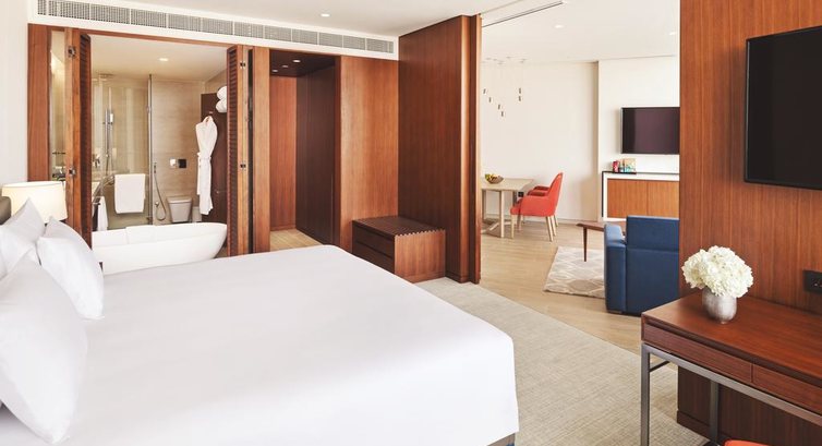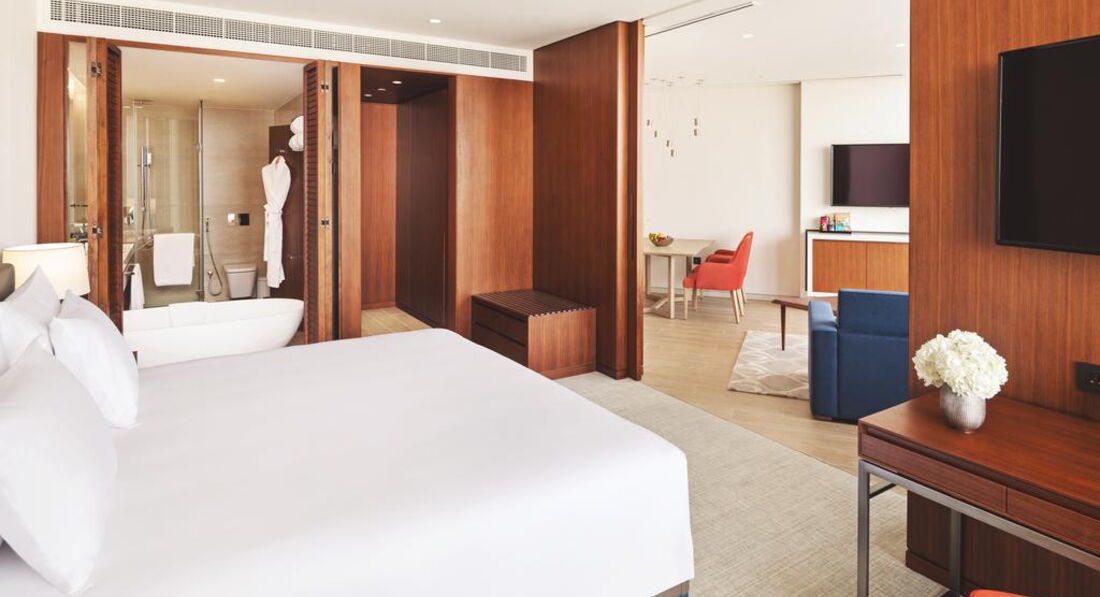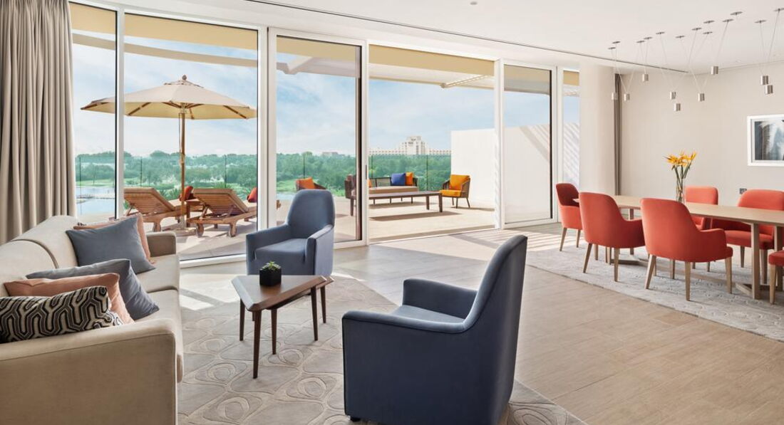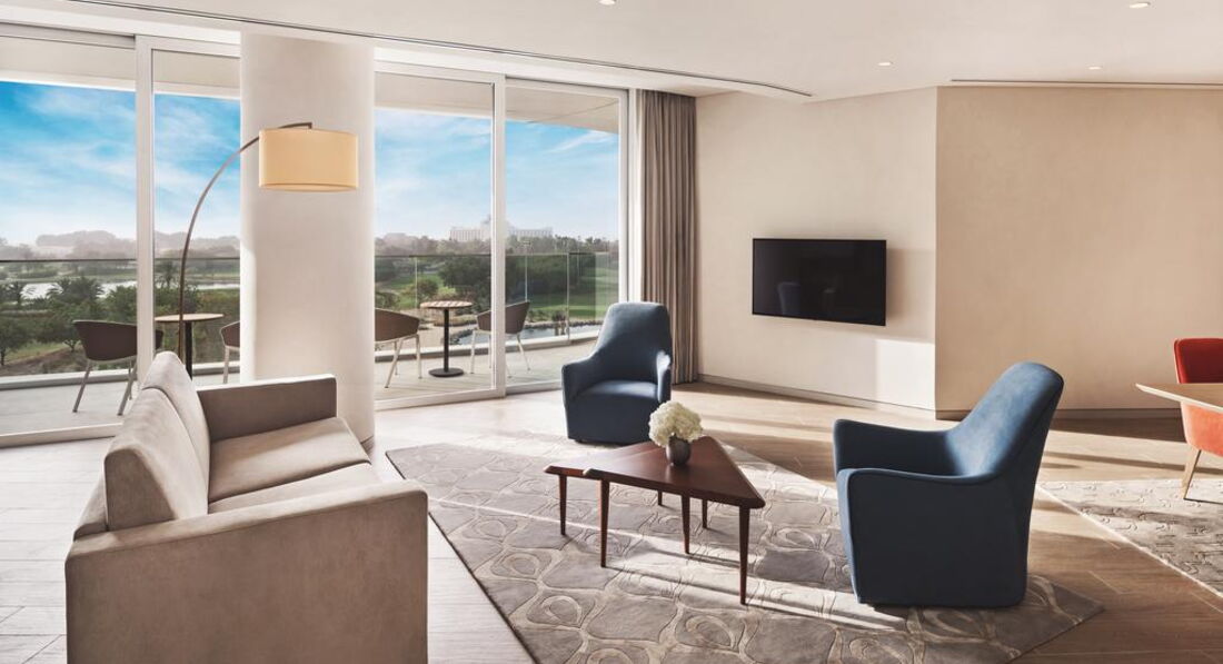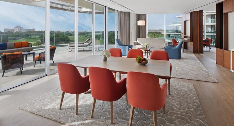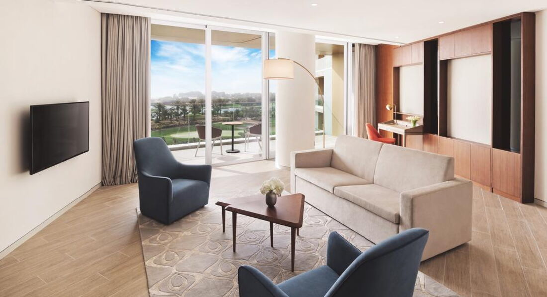 • 2 Luxury One Bedroom Suite (184 м2, 5 поверх, вітальня, спальня з дверима, з видом на море та поле для гольфу, ліжко king-size, тераса, ванна та душ, макс. 3+2 чол., привілеї)