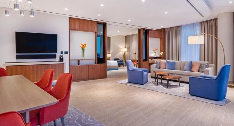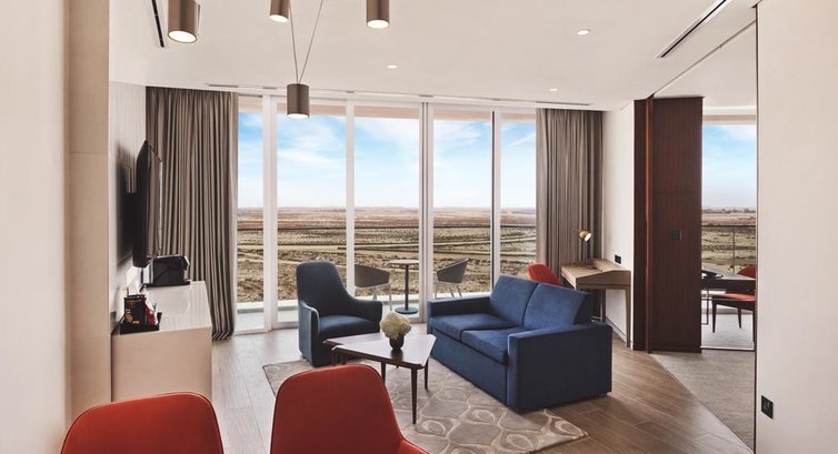 • 10 Junior Suite (70 м2, 2-5 поверхи, вітальня, спальня з дверима, з видом на пустелю, ліжко king-size, балкон, ванна та душ, макс. 3+2 чол.)