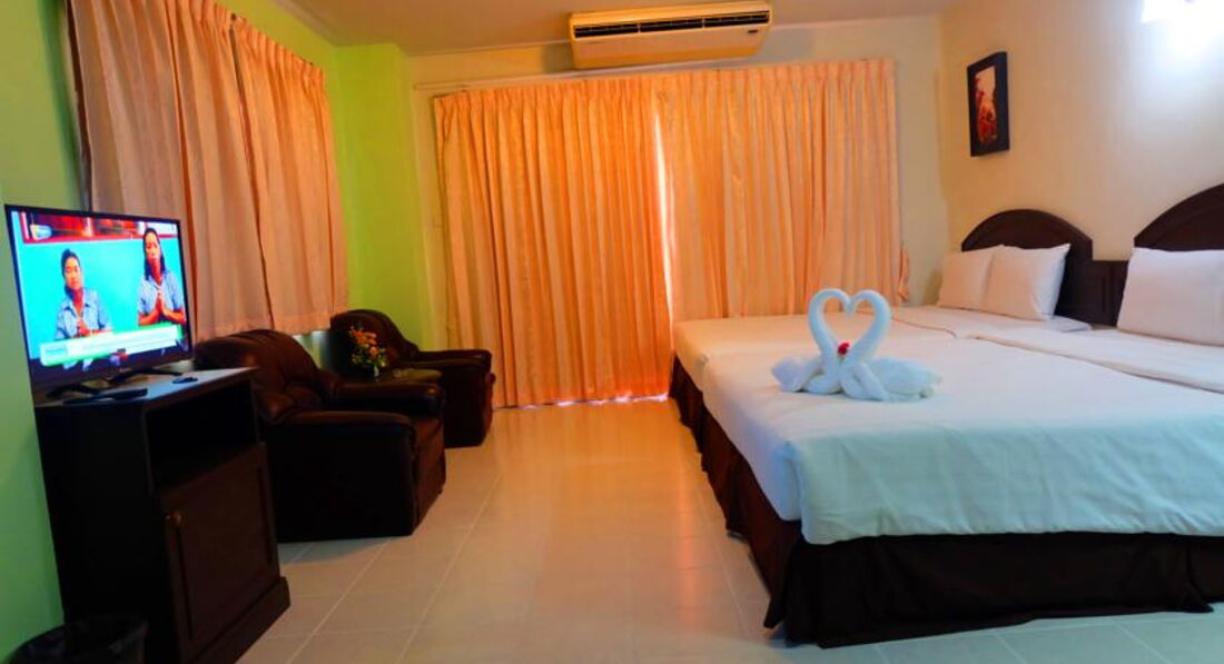 Отель мне понравился сразу.Первое впечатление- просторный номер) За такую стоимость тура в НГ я ожидала гораздо хуже. Уже потом начинаешь рассматривать все нюансы) Единственное что меня смущало всегда-это уборка.Мыли полы только там где пусто, обувь не поправляли, шваброй стороной обходили и всё, пыль не протирали совсем. Но даже это было плюсом для меня! получилось как-то так, что я решила спрятать деньги под стационарный телефон на тумбе. После гуляний ночью, выпитых пару коктейлей пришла именно такая идея в голову,что под телефон спрятать надежно))) В общем, забыв напрочь про эти деньги, и вспомнив спустя энное колличество дней, деньги были не тронутыми) Бывает и такое. Обслуживающий персонал замечательный! Пару случаев- вечером с подругой решили поужинать в ресторане при отеле. У стойки в баре сняла браслеты и решили пересесть за стол. Моя дурная, от тех же коктейлей, голова забыла про эти браслеты и со спокойной душой расслабилась за столом.Мне принесли мои браслеты не то что б просто в руке, а на подносе и на салфеточке) мне было приятно,хоть и мелочь. Так же был случай,что у нас украли на пляже в НГ ночь сумку, где был ключ, телефон и т.д. Нужно было позвонить друзьям по местному номеру- не проблема, бесплатно дали, узнав о проблеме. За утерянный ключ вместо 1000 батт, взяли 600 кажется.