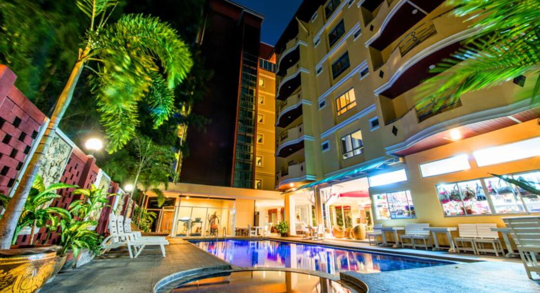 так вот, еще сама недавно искала отзывы об этом отеле, хотя тур уже был куплен и было ясно, что поедем именно в него. теперь могу сама рассказать о впечатлениях. наша пара очень непритязательная и можем одинаково себя чувствовать как в 5*, так и в 2*), поэтому опишу на свой непритязательный вкус. Мы купили номер супериор - самый простяцкий, достался нам на 6м этаже и его дверь была прямо напротив лифта, казалось - все условия для того, чтоб сказать - не лучший вариант. прекрасно слышали во сколько возвращается каждая барышня решившая надеть каблуки, но спать это не мешало, равно как и шумный кондиционер (говорю, мы очень непритязательные)). факты: пробыли там 14 дней, в течение этого времени нам 3 раза меняли белье, каждый день оставляли 2 бутылки питьевой воды, меняли полотенца, проверяли наличие туал бумаги, мыла, шампуней (зачем-то очень много давали, надеюсь не намекали что надо чаще мыться)) были только завтраки: существенное разнообразие тайской пищи, готовили яйца прямо при вас и учитывая пожелания. столовка работает с 6 до 10. советую вставать пораньше, если хотите, чтоб досталось именное разнообразие. обильно селящиеся китайцы и индусы встают по будильнику в 6 и лопают все вкусности. мы приходили несколько раз к 9 - оставалось мало и никто не трудился доложить, если что-то кончилось. далековато до тук-туков, тем кто не любит гулять не советовала бы, но благодаря удаленности отеля от центра событий (те же волкинг и пляж) мы с удовольствием гуляли. совет, если хотите вкусно и дешево поесть езжайте в food park, он находится на первом этаж отеля хилтон.
