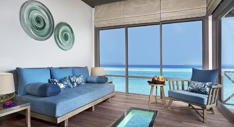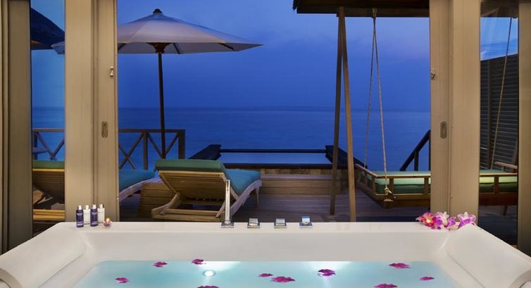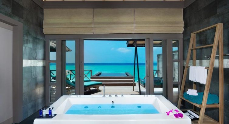 Плюсы: Русскоговоящая девушка на рецепшн, белый широкий свободный от деревьев пляж с великолепным песком. Первое место где я на Мальдивах мог бегать босиком вокруг острова не опасаЯсь угробить себе ступни. Отличные очень комфортабельные водные виллы. Говорят на берегу еще лучше. Великолепные рестораны, отличный винный погреб. Остров небольшой, если хочется уединения, можно не встретить почти никого. Хороший спортзал и великолепный СПА. Очень интересно покатались на паруснике и съездили на соседний остров где кроме нас и лежаков на пляже не было никого. Минусы: 1. На трансфере туда попали в волну. Очень было неприятно. Сильно пожалели что не доплатили за трансфер на гидросамолете, а полетели на местных авиалиниях, потом на лодке. Нам заявляли что лодка будет 40 минут, добирались 2 часа, половина проблевалась до зеленого состояния. Мало приЯтного. на стеклянной двери в туалет и душ СТоило бы поставить завертыш. Номер хорош, но туалет и душ расположены так, что дует там все время, в результате дверь не фиксируется и постоянно открывается. Важно для тех кто едет на сноркелинг и дайвинг: рыбок красивых много, но кораллового сада нет. Вечерами скатов, акул, и тд никто не кормит. Развлекательная программа,- бар ресторан, все.
