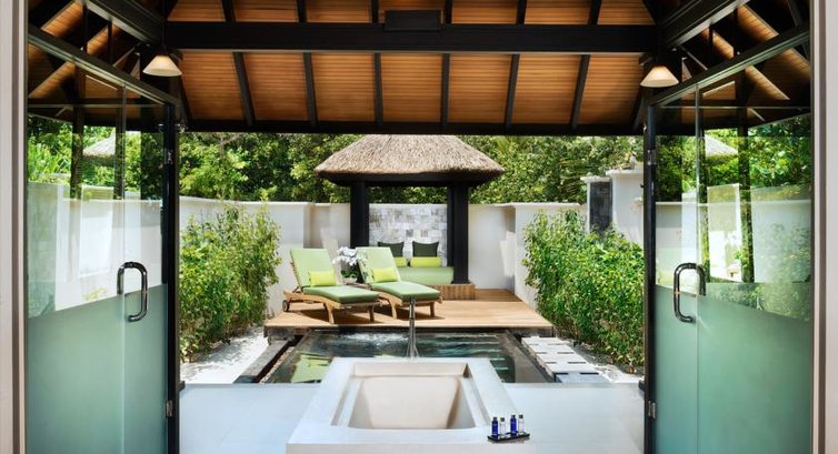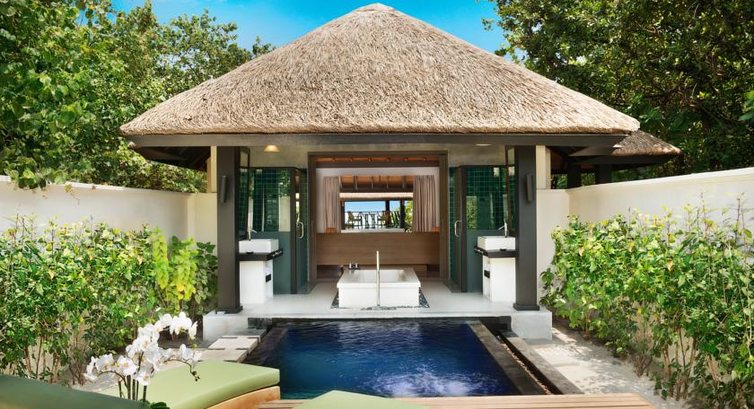 22 Beach Bungalow with Plunge Pool (150 м², макс. 3+1 inf. або 2+1+1 inf.). Вілли, що окремо стоять, на березі, оточені тропічною зеленню. Прямий вихід на пляжі. Відкрита ванна кімната з ванною і зливовим душем, приватний басейн, тераса з шезлонгами та відпочинковою тахтою. Кожна вілла має власну альтанку на пляжі.