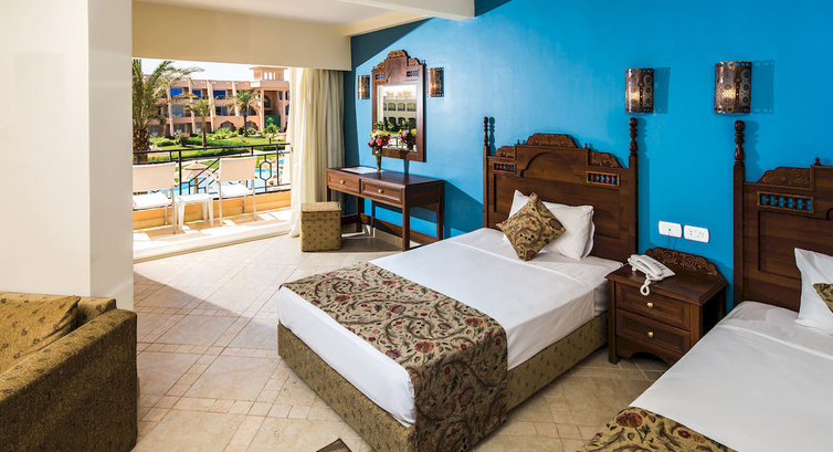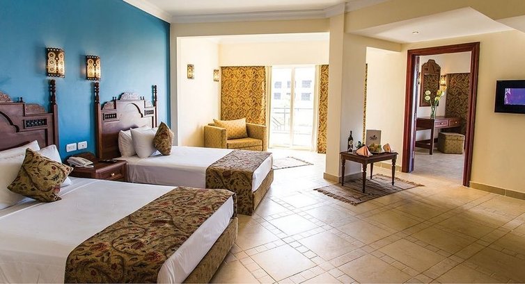 Отдыхали вместе с женой впервые в Египте.Нареканий никаких. Путешествовали от Tez-tura, в аэропорту встретили,собрали огромную очередь и потребовали 27$. вместо 25$ .(так что сразу по прилету становитесь в очередь к банку,от входа слева). Заселение прошло быстро и без проблем. Номер достался без всякой доплаты на первом этаже с выходом через террасу на сад. Приехали достаточно поздно, однако ужин бил. Прямо скажу что я не гурман, но чтобы меня что то удивило, так нет.Из напитков: вино конечно на любителя,пиво вкусное,а вообще лучше пить что нибудь покрепче (в чем мы позже с женой и убедились,что крепкие напитки немножко дезинфицируют организм от местной воды,которой мы почистили зубы). В целом отдых достаточно размеренный и спокойный, но для любителей можно найти развлечения на любой вкус. В течении дня аниматоры отрабатывают на 5 баллов по приглашению на какое либо мероприятие. Вечернее шоу тоже на высоте с хорошей музыкой и подтанцовкой . Завтраки плотные,в обед было много зелени (что приятно порадовало). Не вдаваясь в подробности каждый найдет себе что покушать и выпить.Заказывали вечер в Египетском ресторане, (сходите если устали от шведского стола и хотите себя почувствовать в ресторане, тем паче что это бесплатно). На пляж ходили. Брали экскурсию на райский остров + 4 коралловых рифа,сгорели напрочь (на яхте целый день,но все таки наверное больше плюсов чем минусов).Уборка в номере качественная и постоянная.В день выселения сдали номер в 12:00 и целый день еще были на море и у бассейна,после чего нам предоставили номер чтобы привести себя в порядок перед дорогой. Писать можно бесконечно, тем более что уже столько отзывов об этом отеле.Хочу сказать только одно- сюда хочется еще раз приехать...