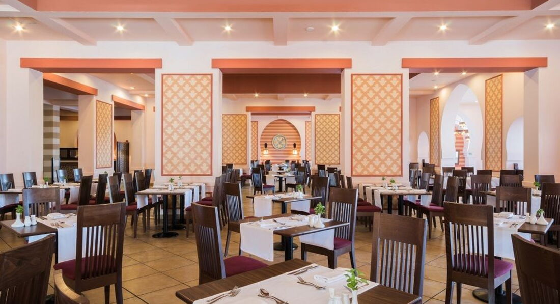 Отдыхали в августе.отель тихий,молодежи почти нет.выбрали потому что 5 звезд и цена была сравнительно невысокая по сравнению с другими 5 звездами.размещение нормальное.мебель везде старая.не современная. Когда я увидела на ужине,что из ассортимента еды только один маленький зал(обычно в пятерках зала 3-4 с едой),я была в шоке,настроение упало.когда приезжаешь в Египет,ждешь прежде всего хорошего питания,здесь мяса почти не было,когда пришли на ужин часов в 8,еды осталось мало.как оказалось потом,ее немного и было.иногда на улице что то пытались жарить пару раз-курица паленая,черная.была проверка во время нашего отдыха-поэтому эти два дня были более менее завтраки и какие то программы вечером.вино ужасное!!!обычно я хорошо отношусь к местному алкоголю,но здесь просто невозможно пить вино!!!самое ужасное что в этих лживо названных 5 звездах вино и остальной алкоголь подавали в стаканах!!!!!такого я нигде не видела!!!в общем с едой 3 оценка.затем я узнала,что на пляже нет ресторана!!!он есть во всех 5 звездах!!!а здесь только бар.