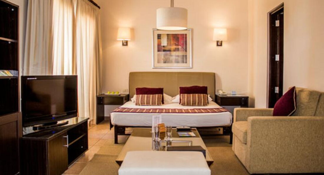 Комнаты очень просторные. У нас был номер с двумя спальнями. В одной из них кондиционер не работал, два других слегка шумны, но в пределах допустимого. Дверь в спальню с неработающим кондиционером время от времени оставляли дверь открытой, прохладный воздух шел из коридора. Нам этого было достаточно, поэтому за починкой не обращались. Имеется кухня, но без посуды, все полочки пустые. В кухне, собственно, необходимости нет, питания в ресторане более чем достаточно. В холодильнике небольшой выбор напитков (платно), но мы и этим не пользовались. Воду приносили ежедневно в номер бесплатно. Кроме того, ее всегда можно взять в лаунж-баре или в баре у бассейна. Уборка в нашем номере была достаточно качественной. Проблем, как описано в некоторых других отзывах (песок, пыль, отсутствие влажной уборки) у нас не было. Оставляли на кровати утром по 1 евро. Кроме уборки за это каждый день на кровати нам мастерили из полотенец разные фигуры – крокодилов, черепах, лебедей, сердечки и т.д. Очень мило :)