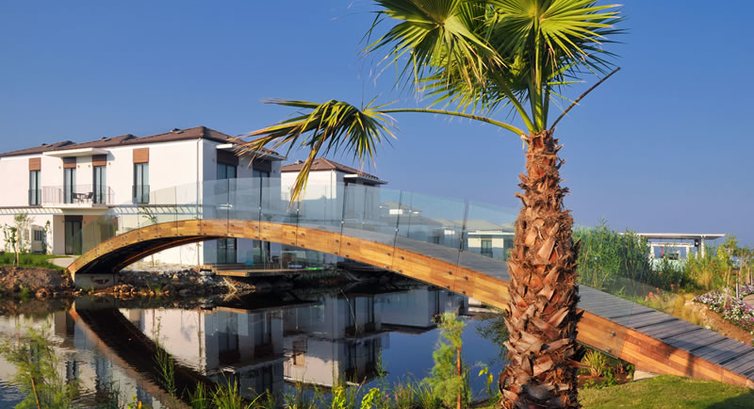 Отель, безусловно, заслуживает внимания - очень интересная планировка территории, небольшие корпуса-бунгало, все выглядит свежим, новым, сделанным со вкусом - имеет привкус современного минимализма. В общем, за идею такого отеля - оценка "отлично". Однако на данном этапе - это далеко не 5 звезд...... Если обращать внимание совсем уж на детали, то педанты повсюду найдут следы стройки и ремонта (например, в номерах), которые скорее хотели закончить - неаккуратные отделки, щели, сантехника висит похабно и тп. С другой стороны следует отметить работу персонала, который постоянно ухаживает за территорией, подсаживает растения, поливает и убирает. Пруд - безусловное украшение отеля и очень красиво продумано сочетание бассейна с видом на пруд и горы.