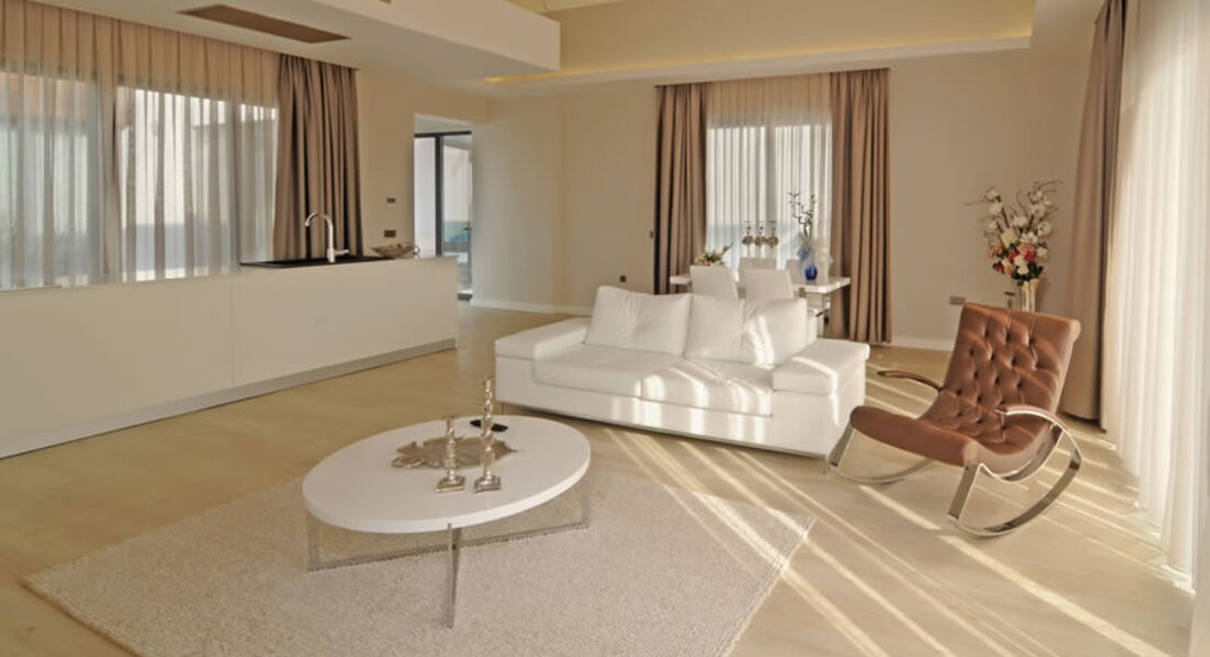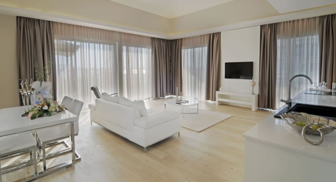 1 King Suite (макс. 4 чол., 120 м2, вітальня, 2 спальні з дверима, 2 ванні кімнати, джакузі, кухня, басейн);