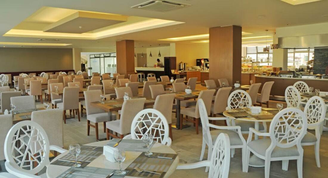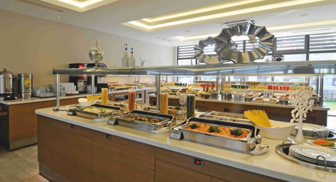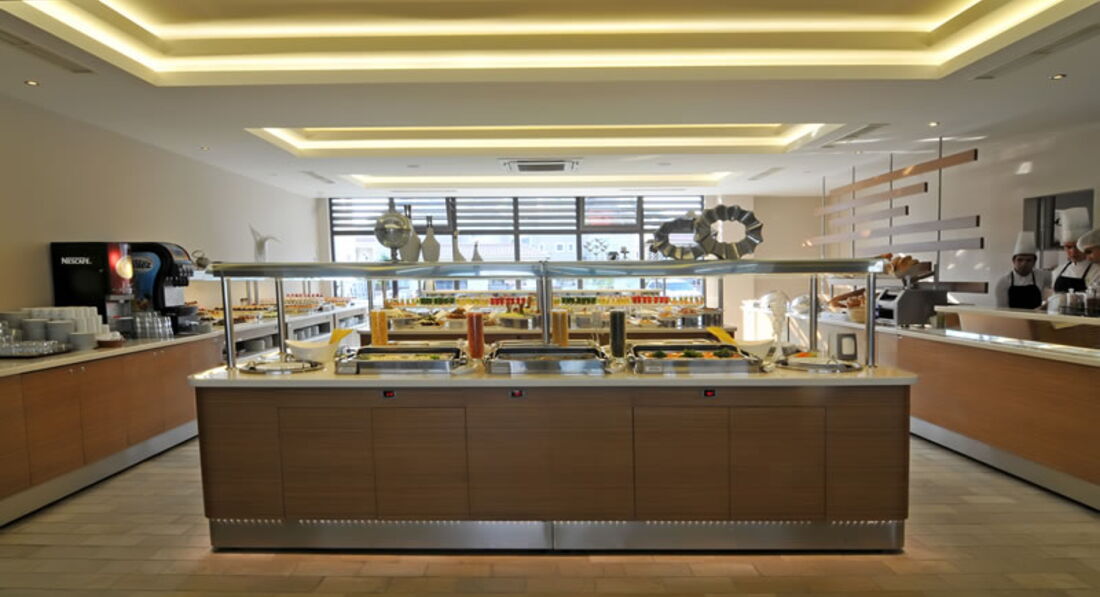 Ресторан открывается с семи утра и работает допоздна. Выбор блюд заслуживает всяческих похвал, очень вкусные морепродукты и куриные блюда. Немного не хватало наших супов - взамен предлагают молочные и овощные суп-пюре типа детского питания. Отсутствие свинины с лихвой компенсируется говядиной. Большой выбор салатов и солений, вкусная выпечка. Восточные сладости своеобразны, но выбор богатый - всегда можно найти по вкусу. Многие блюда готовятся тут же, на огромных сковородах, ловкими поварами. Просторный зал с кондиционерами, летняя площадка. Обслуживание хорошее.
