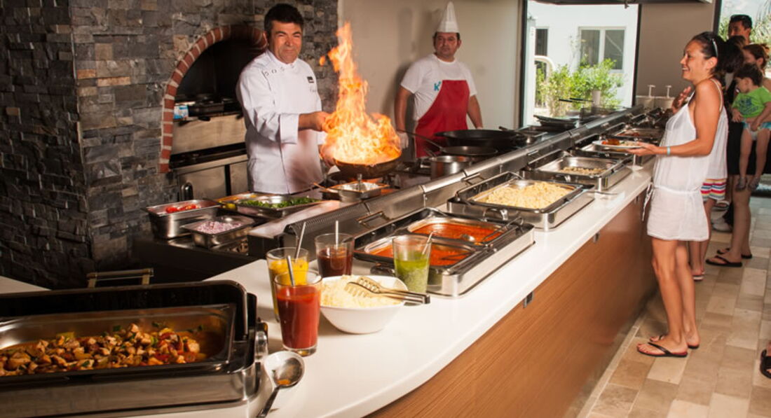 Включає: сніданок (07:00-10:00), пізній сніданок (10:00-11:00), обід (12:30-14:30), вечеря (19:00-21:30), нічні закуски (23:00-00:00) – шведський стіл; закуски (12:00-16:00), кава/чай та випічка (16:30-17:30).