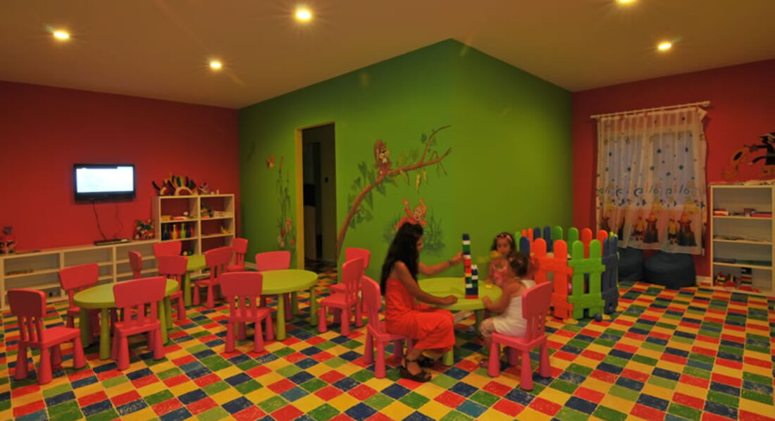 Детская комната теоретически есть и довольно неплохая. Но вы должны сами заниматься со своими детками. Никто с ними не играет, конкурсы не проводит.