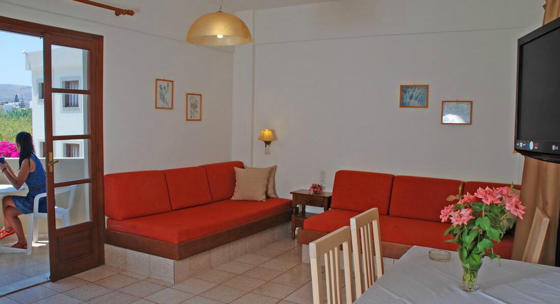 apartment 2-4 pax (двокімнатний номер, спальня та вітальня з дверима, осн. ліжко – 2 односпальні, дод. – софа, кухонний куточок, макс. 4 чол., 50 м2),