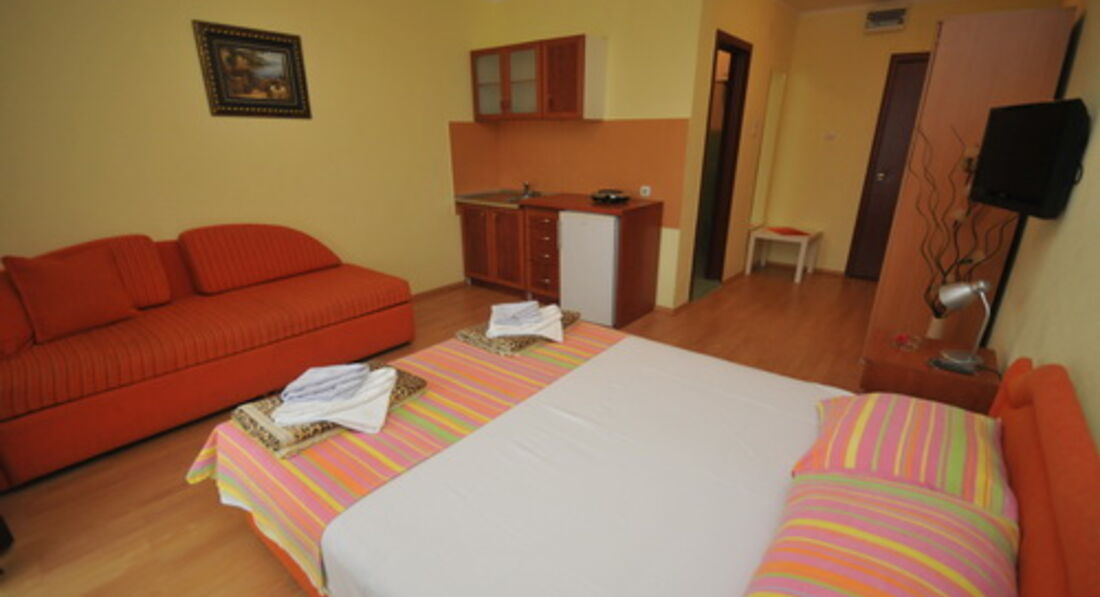 Готель являє собою поверховий будинок. Для розміщення пропонується номери-студії; - дво-, три-, чотири-, п'ятимісні апартаменти.