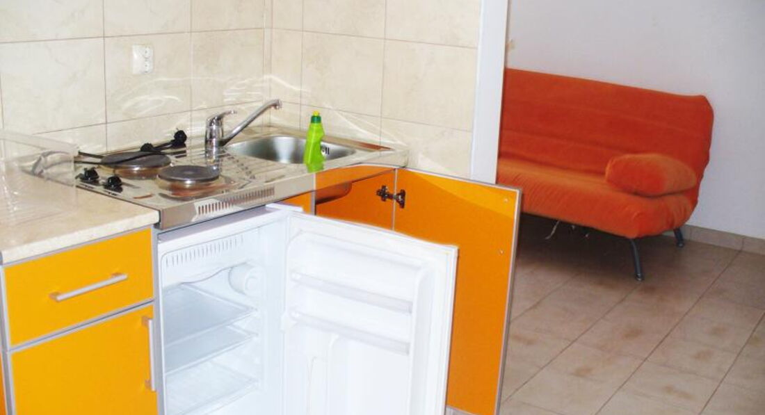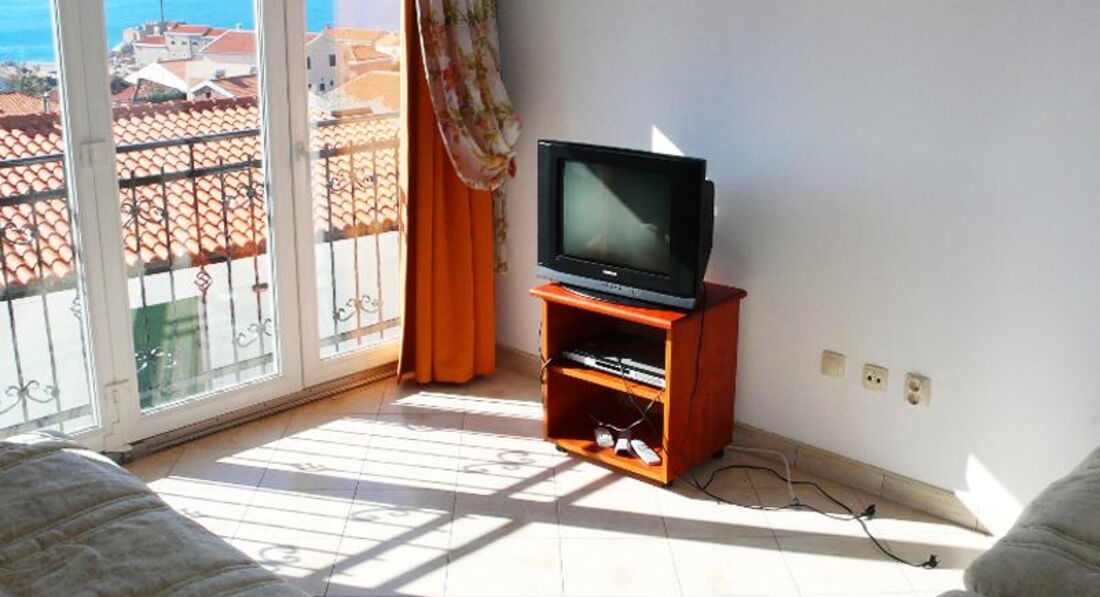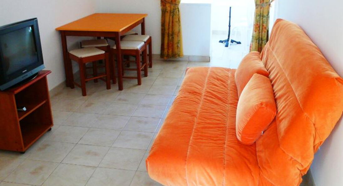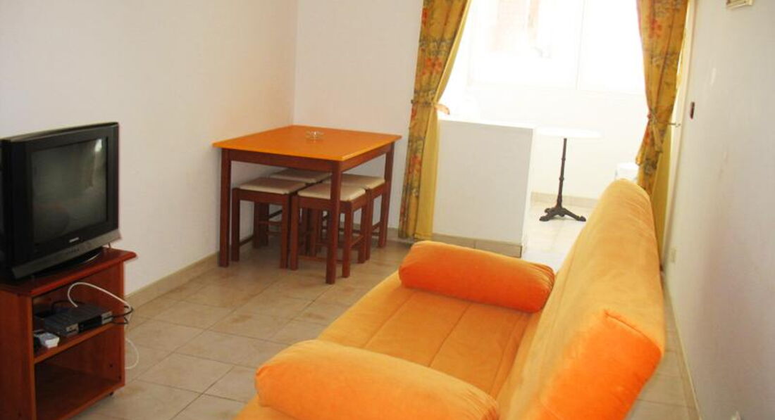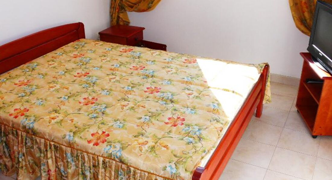 В APP 03+1: 1 номер, двокімнатний-душ, туалет, кондиціонер, міні-кухня, телевізор. У спальні – французьке ліжко, у залі – диван.