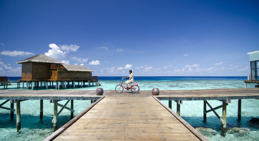 14 Ocean Revive Suite (вид на схід або захід сонця, 270 м2, макс. 2+1 чол.). Водні вілли, що стоять на палях у воді за 800 метрів від острова, з індивідуальним спуском у лагуну. У спальні: ліжко king-size (3х2 м), телевізор з плоским 42-дюймовим екраном, робоча зона з письмовим столом, вікна на всю стіну, що виходять на терасу і басейн. Тераса обладнана круглою мармуровою ванною просто неба з видом на океан, шезлонгами, є вихід до власного басейну (20 м2). Басейн веде до окремої тераси над водою, є шезлонги, індивідуальний спуск у лагуну. Вітальня з видом на океан і басейн: столик для вечері, власна ванна кімната, телевізор. Головна ванна кімната аналогічна ванній кімнаті номера Beach Revive Suite, за винятком душу під відкритим небом. Є фойє.