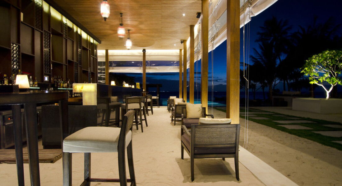 13 Beach Revive Suite (вид на схід чи захід сонця, 206 м2, макс. 2+1 чол.). Вілли, що окремо стоять, на березі. У спальні: ліжко king-size (2х2 м), вікна на всю стіну з видом на пляж, басейн і океан, вихід на терасу із зоною відпочинку, кріслами-гойдалками, столиком для вечері, зоною для масажу та прямим доступом до пляжу з шезлонгами . Спальня має прямий вихід до власного басейну (20 м2) із шезлонгами. Ванна кімната: зона відпочинку з диваном, глибока ванна з мармуру, дві мармурові раковини, туалетний столик з дзеркалом для макіяжу, окрема зона з зливовим душем, вбиральня, душ просто неба, вихід у невеликий власний садок. Фойє та окрема робоча зона з письмовим столом.