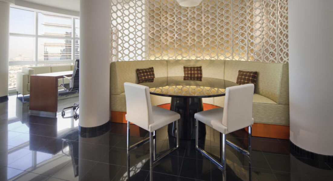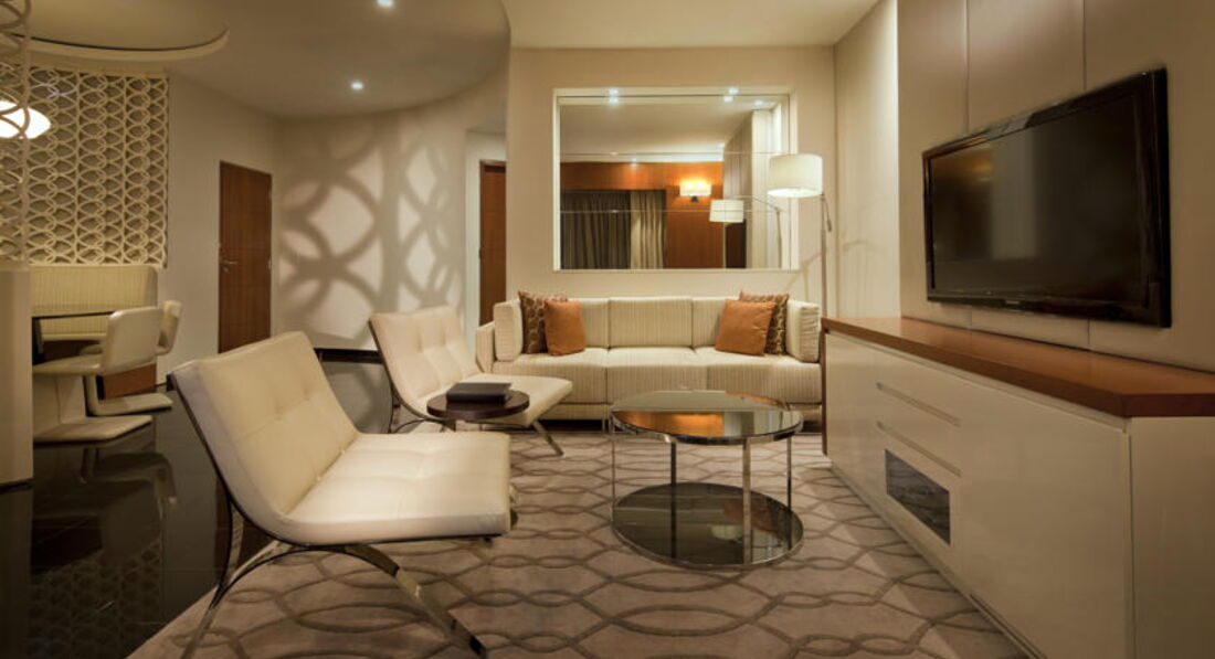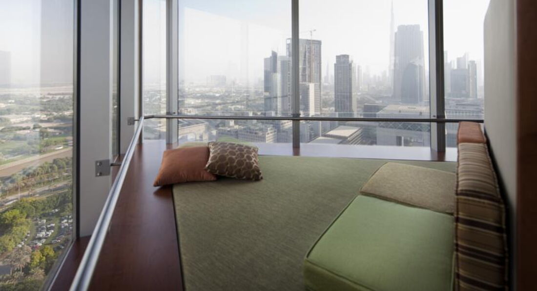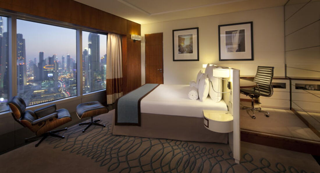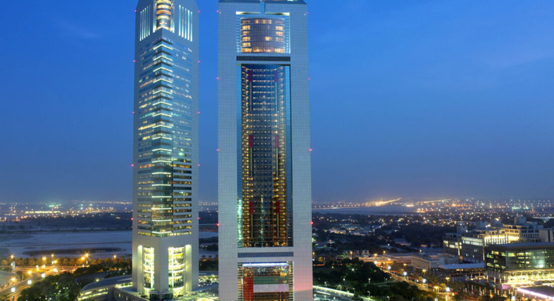 Cнаружи - одно из самых красивых зданий Дубаи. Внутри - один из лучших бизнес отелей страны. Все на уровне, на самом высочайшем. Рядом - выставочный центр. На минус первом этаже - комплекс магазинов и росторанов (одних из лучших в городе). Если вы едете не выставку или на деловые встречи в Дубаи - стоит остановиться в этом отеле (так как это лучший бизнес отель города).