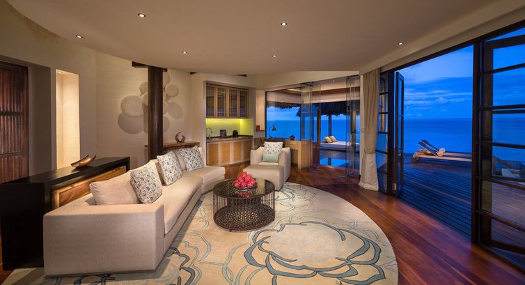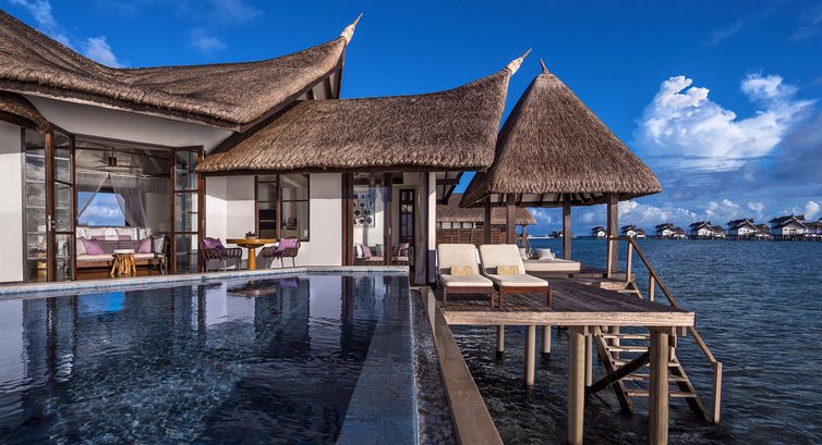 7 Ocean Suite with Pool (256 м2, макс. 4 або 2+2 чол.). Двоповерхові окремі водні вілли на палях у воді, з індивідуальним спуском в лагуну. Чи не з'єднані з іншими водними віллами. На першому поверсі: вітальня зі сходами на другий поверх, виходом на терасу до власного басейну (17 м2), а також на терасу з шезлонгами під навісом та індивідуальним спуском у лагуну. Ванна кімната аналогічна ванній кімнаті категорії Water Villa with Pool. Також на першому поверсі розташована вбиральня. На другому поверсі: спальня з ліжком king-size (2х2 м), письмовим столом, гардеробною шафою та ванною кімнатою з зливовим душем, тераса з видом на лагуну. Вілли цієї категорії не пов'язані з основним островом - пересування здійснюється на човні доні (за викликом).