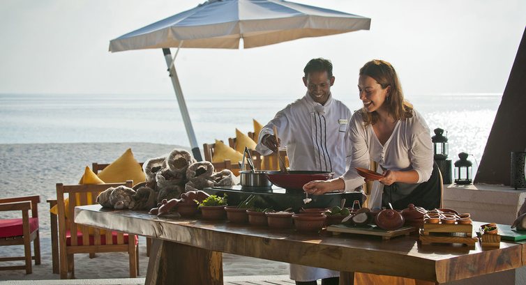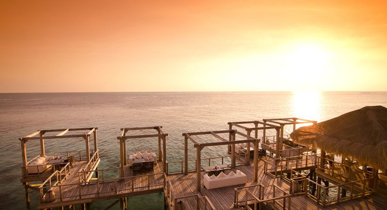 В отеле отличный сервис в дайвинг центре и на рецепции работают русскоговорящие сотрудники которые при необходимости решают любые (ЛЮБЫЕ) вопросы быстро и без проблем например, для нашей компании ночью организовали место с большим экраном, чтобы мы могли не загадив чью то виллу посмотреть трансляцию матча по футболу Россия/Чехия, а для меня не зависимо выгодно или нет, возили на дайвинг для погружений и днём и ночью одного на кораблике. часть нашей компании жила на берегу в пляжном бунгало, который понравился больше чем водная вилла тем, что больше места и купаться приятнее с берега, тк в водных виллах течение. благодаря ему же вода около вилл чистейшая но мешает, можно зацеписть и поцарапаться о коралл. дайвинг у острова великолепный. несколько затонувших объектов, один прямо у берега 22.4 метра и неподалёку есть ещё, не успел посмотреть. живой домашний риф, и недалеко внешние стены с двух сторон. бывают манты и крупные акулы (китовые, конечно) по поводу завтраков и вообще еды. мы, россияне не всегда спрашиваем и если не видим выкладку или готовящего повара, думаем что этого нет. неправильно. я только во второй день догадался спросить почему нет каш, омлетов и всякое такое. оказывается всё это просто не показано, может быт приготовлено так как вы пожелаете. ресторан очень красивый из огромных стволов деревьев вырезаны громадные столешницы, всё декорировано со вкусом как и номера. нет никаких неприятных воспоминаний. в памяти только идеальные восхищённые картинки. за питание поставил 4ку только потому что готовят медленно и маленькие порции в отличии от цен. дорогой бренд. стоит своих денег, если вы можете себе позволить не задумываться о ценах