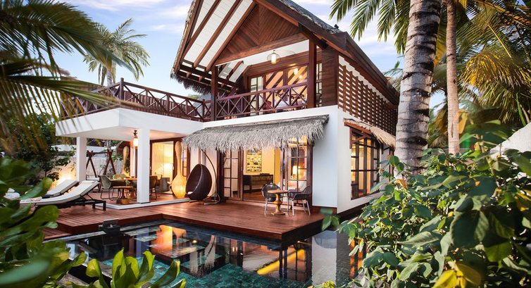 15 Beach Villa with Pool (184 м2, макс. 3 або 2+2 чол.). Вілли, що окремо стоять, на березі. Спальня з ліжком king-size (2х2 м), телевізор з плоским 42-дюймовим екраном, окрема робоча зона з письмовим столом, вбиральня. Спальня має вихід на терасу з навісом та доступом на власну ділянку пляжу з шезлонгами. На терасі: крісла-гойдалки, столик для вечері, зона для масажу. Також спальня має прямий вихід до власного басейну L-подібної форми (49 м2), біля якого розташована кругла ванна на відкритому повітрі. Ванна кімната включає зону відпочинку з диваном, дві раковини, туалетний столик з дзеркалом для макіяжу, окрему зону з зливовим душем, а також круглу ванну та зону з душем просто неба.