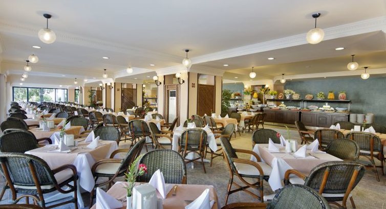 Бари та ресторани: головний ресторан (критий, з кондиціонером, літня тераса, дитячі стільці), лобі-бар (10:00-00:30), бар біля басейну (10:00-00:30), бар на пляжі (10 :00-00:30), диско-бар (23:00-01:30). 2 ресторани A la Carte: рибний, турецький - безкоштовно 1 раз за час проживання, за попередньою резервацією.