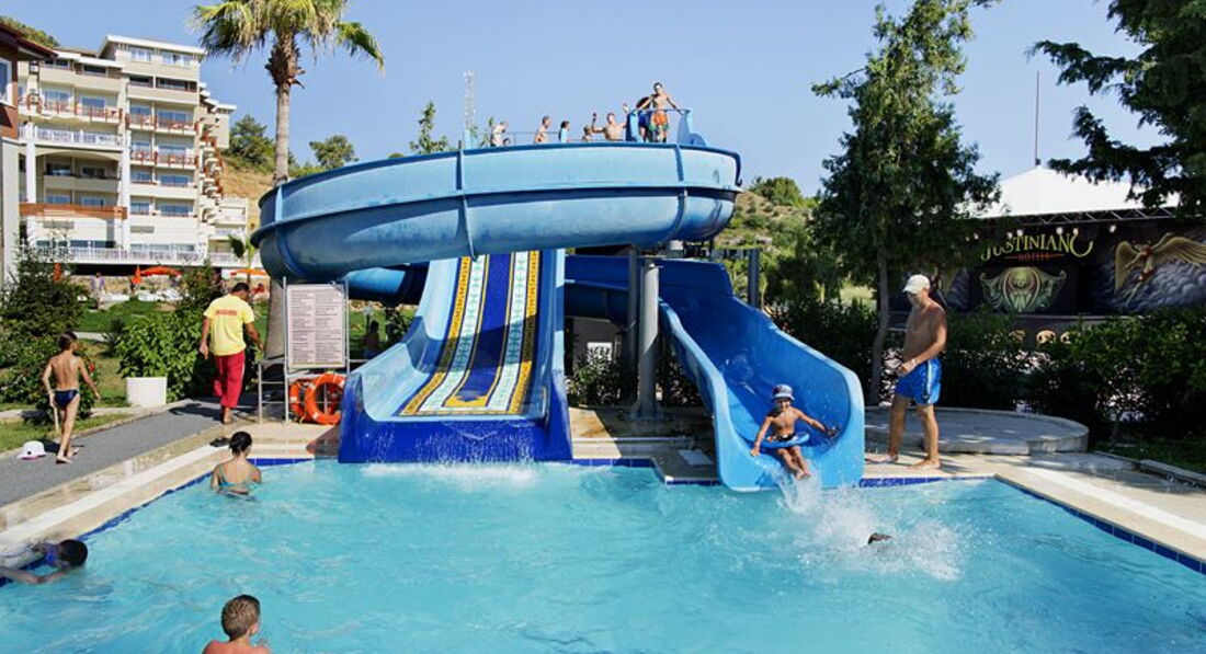 Отдыхали вдвоем с подружкой, нам почти все понравилось, а особенно отель - все новенькое, чистенькое, в этом году отель только открылся, минусов не увидели (но уборка в номерах желает лучшего). Развлечений для молодежи на территории гостиницы мало, но аниматоры находят способы развлечь народ (хотя некоторые с них очень навязчивы). Мы утром ходили на пляж, в обед отдыхали у бассейна ну а вечером естественно на баре , бармен Адам за отдельную плату делает отличные коктейли. Заметила что его любимое слово на русском это «он маньяк!!!». Ну а потом все дружно с бара топали на дискотеку, которая была до 02:00, после чего жизнь в justiniano превращалась в сонное царство. Но Вы знаете, даже вот это однообразие нам ничуть не надоело, главное отдыхать с позитивным настроением и все будет ОК.