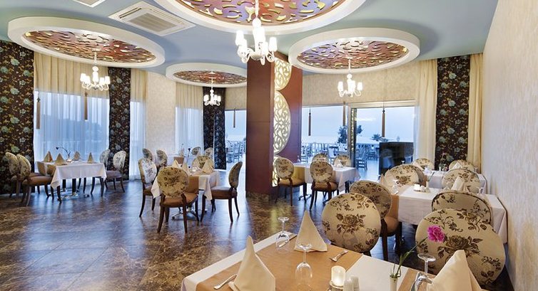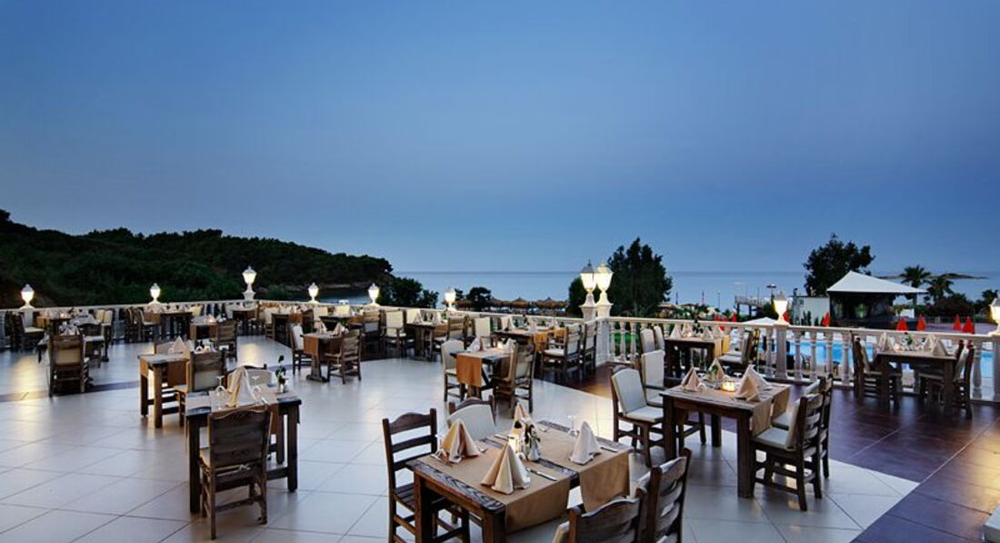 Бари та ресторани: головний ресторан (критий, з кондиціонером, літня тераса), 2 бари. 2 ресторани A la Carte: рибний, м'ясний – безкоштовно 1 раз, за попередньою резервацією.