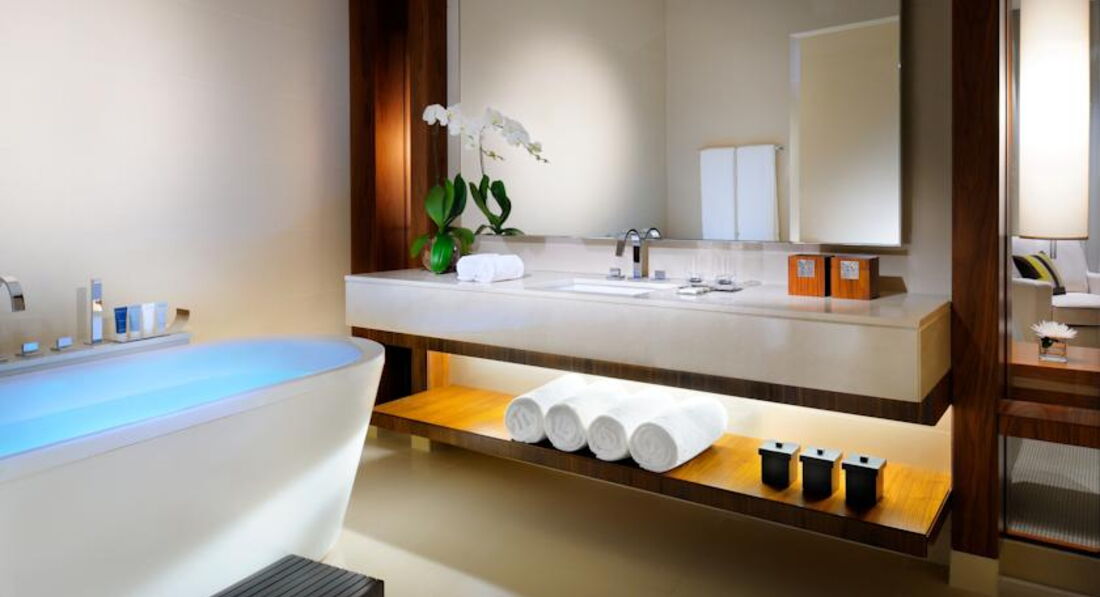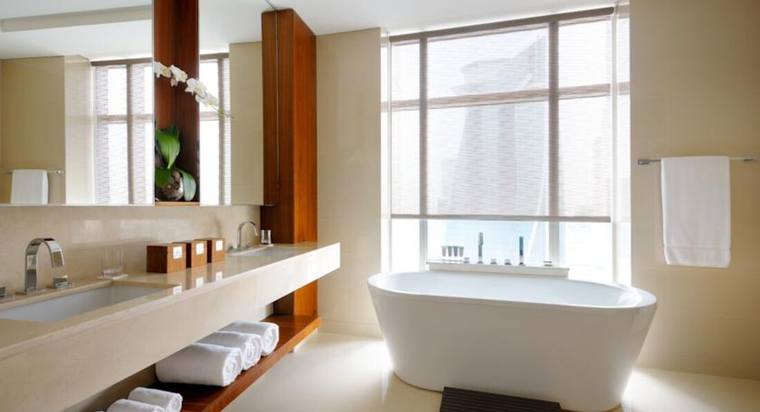 Буду краток. Трансфер от аэропорта до отеля занял минут 40-50, заселение быстрое, панорамный лифт, и вот мы на 47 этаже. Номер огромный, два туалета, ванная с окном в пол и набором необходимых принадлежностей для душа, бритья, душевая, столовая, гостиная. Мебель добротная, уборка номера нормальная, вообще в номере постоянное ощущение приятной свежести. В номере есть чайные принадлежности. Телевизор большая плазма с уймой каналов, российский нашли один. В номере электронный сейф, выдвижной.