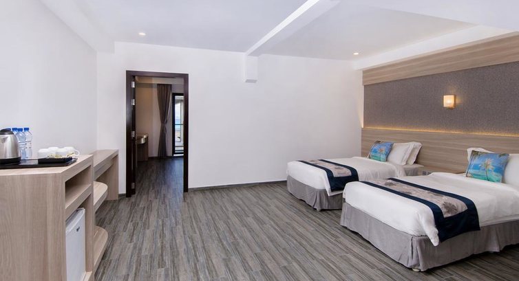 • Deluxe Family Room with Balcony and Seaview сімейні номери з балконом обладнані ліжком розміру «king-size» та односпальним ліжком, просторою ванною кімнатою з душем. У номерах є 40-дюймовий телевізор із світлодіодним підсвічуванням із супутниковими каналами.