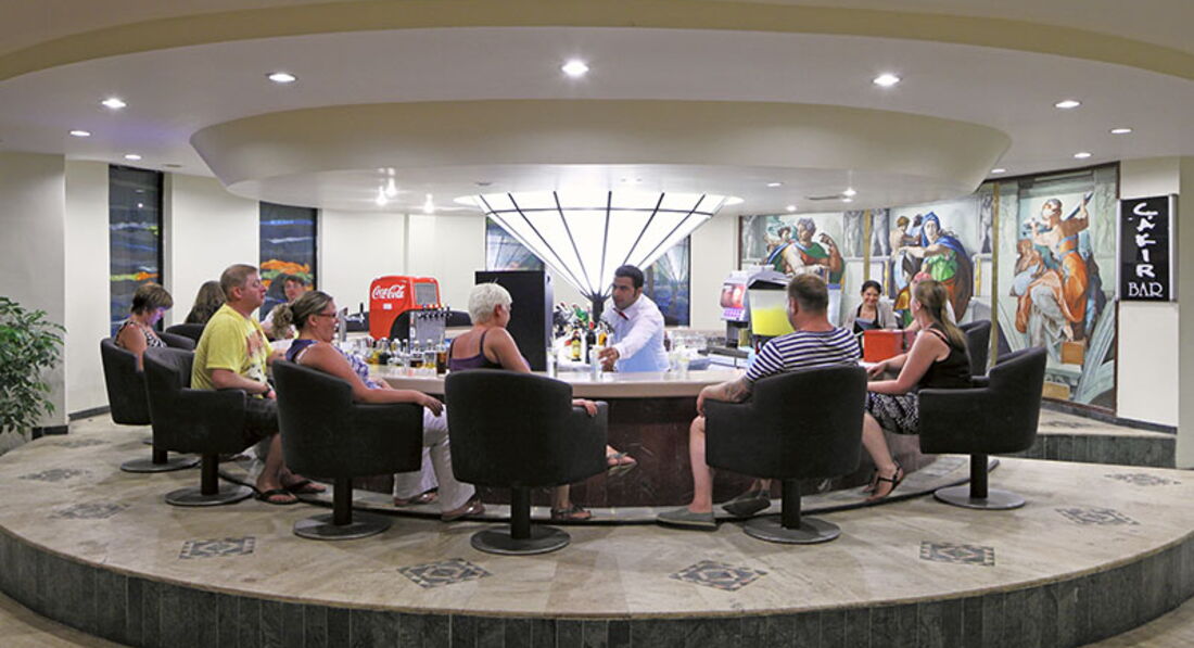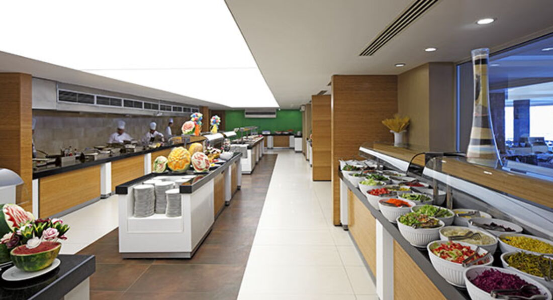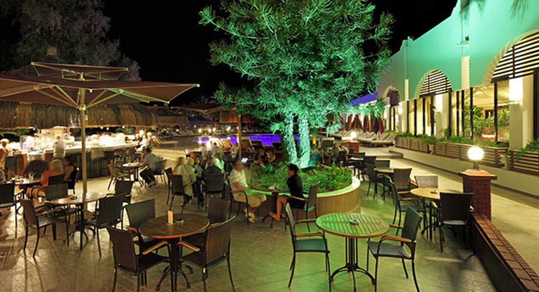 Бари та ресторани: головний ресторан розрахований на 600 осіб (критий, з кондиціонером, літня тераса, дитяче меню, дитячі стільці), лобі-бар (24 години), бар біля басейну (09:00-24:30), бар на пляжі (10:00-18:00), диско-бар (24:00-03:00), вітамін-бар (10:00-18:00). 2 ресторани A la Carte: італійська, рибна - відвідування кожного з ресторанів безкоштовно 1 раз на тиждень, за попередньою резервацією.