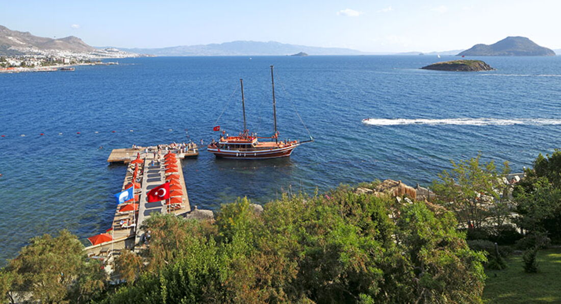 Розташування: на самому березі моря, 4 км від курортного селища Тургутрейс, в 18 км від центру Бодрума і в 50 км від аеропорту Бодрума.