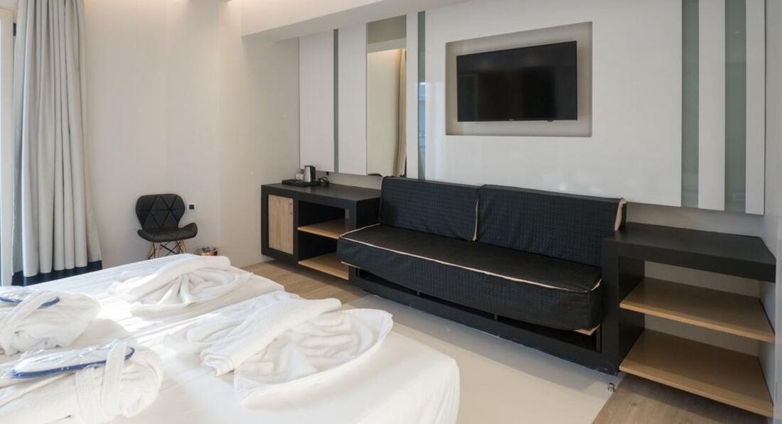 • Junior suite front SV (прямий вид на море, номери відкритого плану, осн. ліжко - двоспальне (2 односпальні за запитом), дод. - односпальне ліжко, макс. 3 чол., 29-34 м2)
