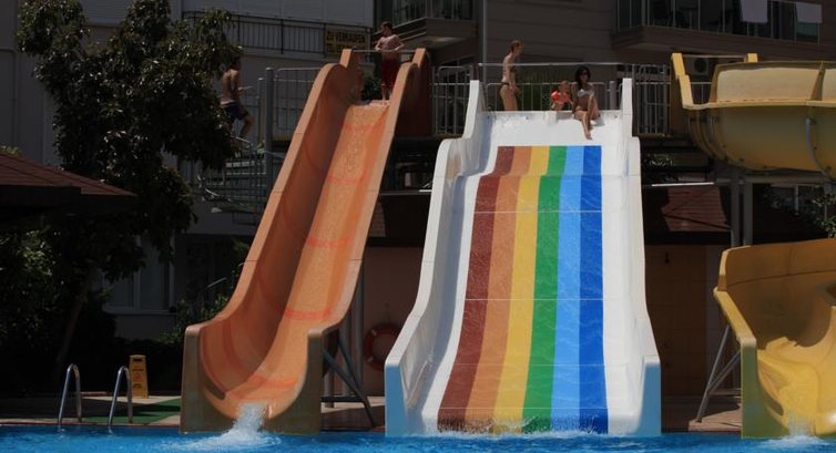 Основная территория - два бассейна, один бассейн очень большой.Второй - я бы сказал не бассейн, а гораздо лучше (находится отдельно от первого большего бассейна), вода потоком постоянно идет по кругу,и вы просто навертываете круги по потоку, попадаете периодически на небольшие бассейны, а дальше самое главное,ГОРКИ!!! они просто очень великолепны.