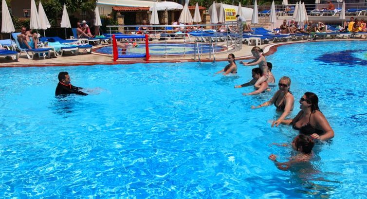 Отель находится в центре Алании, напротив знаменитого пляжа Клеопатра. Отдыхали мы большой веселой компанией в сентябре, в это время в отеле в основном были пожилые немцы. Гостей младше 50 мы не наблюдали. Заселили сразу же. Персонал в отеле очень хороший и доброжелательный, но большинство из них говорит только на немецком языке, и лишь немногие по-английски. Отель очень чистый и уютный, но мебель не особа новая, хотя для нас это и не проблема, так как почти все время мы проводили . У этого отеля есть замечательная команда аниматоров, хороший бассейн (хотя мы не пользовались им, как отель перед пляжем), и все время что-то происходит. Бар при системе "все включено" закрывался в полночь и не было никакой возможности чтобы приобрести собственные напитки. Однажды, когда все легли спать и наша группа хотела продолжить веселиться и распевать песни, к нам подошли и предупредили что мы нарушаем правила. Еда превосходная. Это - понятие по системе "все включено". Не ожидайте европейских блюд, но их турецкие блюда и напитки достойны восхищения. Различные салаты и блюда, говядина и куриное мясо, очень хорошие конфеты. Только проблема состоит в том, что ресторан, хотя довольно большой, не вмещает всех гостей и иногда приходится ждать, чтобы найти столик. Если мы еще приедем в Аланию, то возможно опять остановимся в этом отеле.