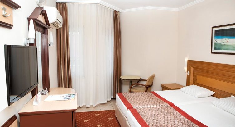 При приезде в отель столкнулись с хамством и вымогательством сотрудника отеля(фото прикрепила).Мы попросили заменить номер с не работающим кондиционером и холодильником,нам он предложили за это 26 евро.Мы связалсиь с отельным гидом,которая не разобравшись в ситуации разговаривала на повышенных тонах.В конце концов номер заменили.Оказалось,что сотрудник отельному гиду сказал,что мы требовали аппартаменты да еще и с видом на бассейн,Мы приехали в 20-30,какие аппартаменты и бассейн?Тут от усталости валишься.Гид отельный Екатерина Петренко,сотрудник Анекс тура,никому не понравилась пренебрежительным отношением к русским,типа мы жадные и едем без денег.Вообщем,не хотели бы с такой еще раз столкнуться.Кстати в отеле не хамам,а спа салон.Катерина же кто не разбирается в него рекомендует,а типа кто разбирается пытается всунуть в такую же турецкую баню в подвале частного дома,а потом,если отказываются в турецкую баню идти ,везут в настоящй хамам,дабы не возвращать же навар.Будьте внимательны и все спрашивайте.